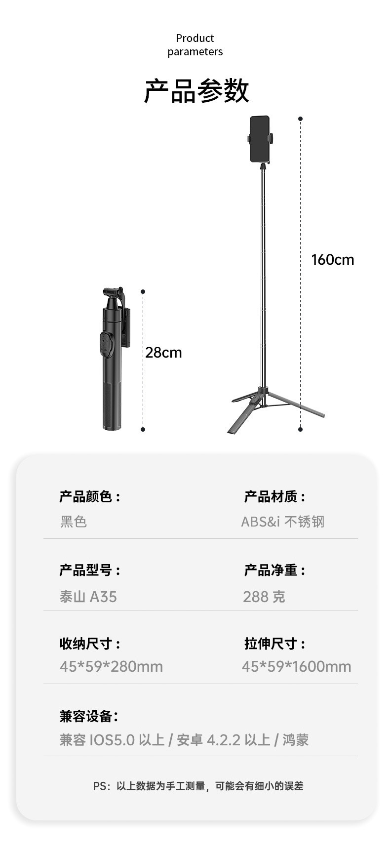 새로운 A35 휴대 전화 셀카 스틱 플로어 라이브 스탠드 쉐이크 톤 블루투스 원격 컨트롤러 삼각대 핸드 헬드 셀카 스틱