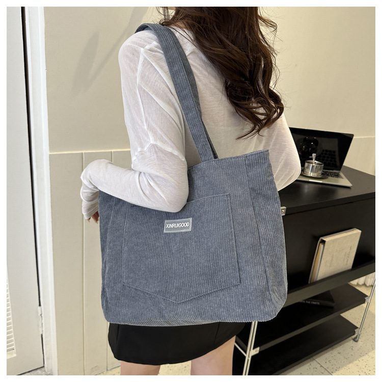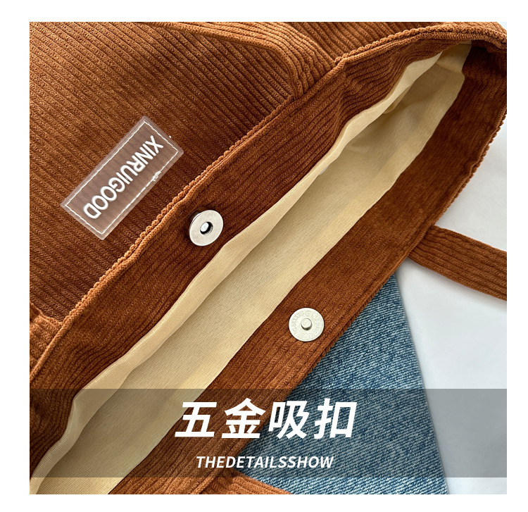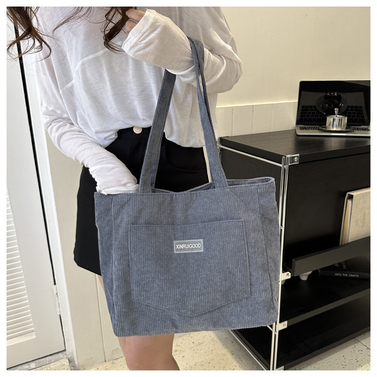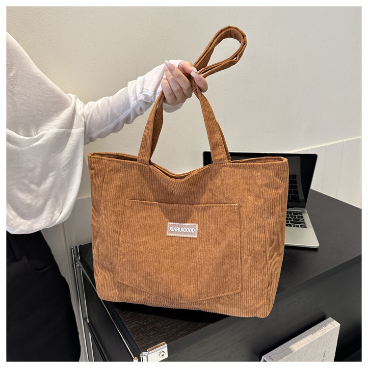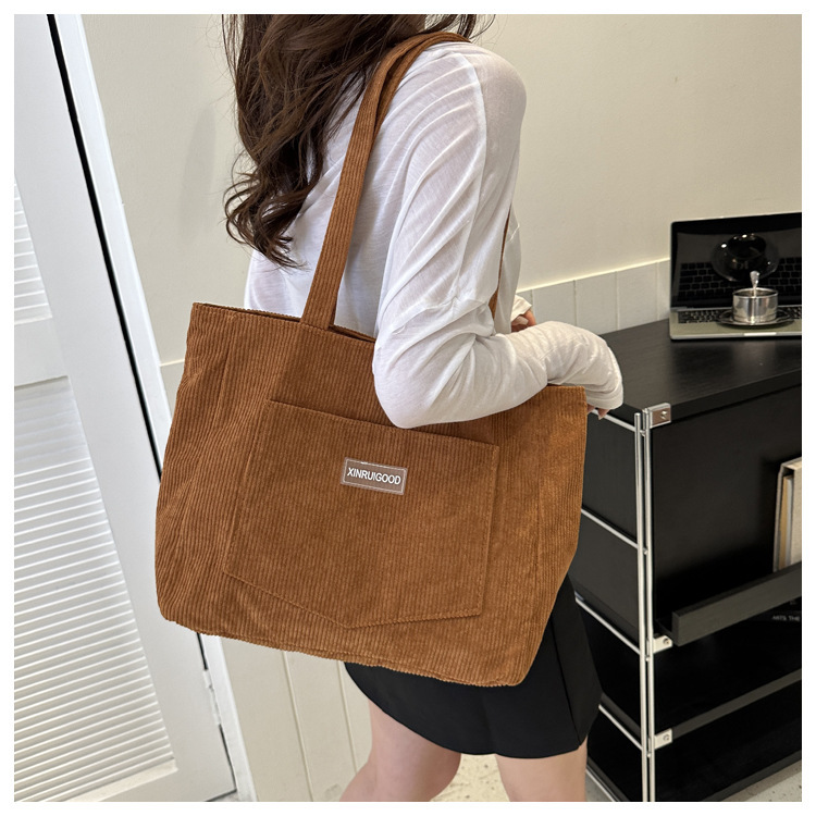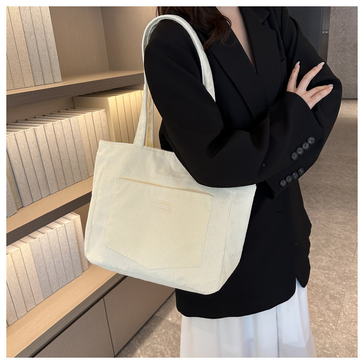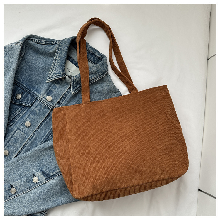 대용량 토트 백 여성의 2024 새로운 패션 코듀로이 숄더 백 인 모리 언더암 가방 핸드백스토어 가기