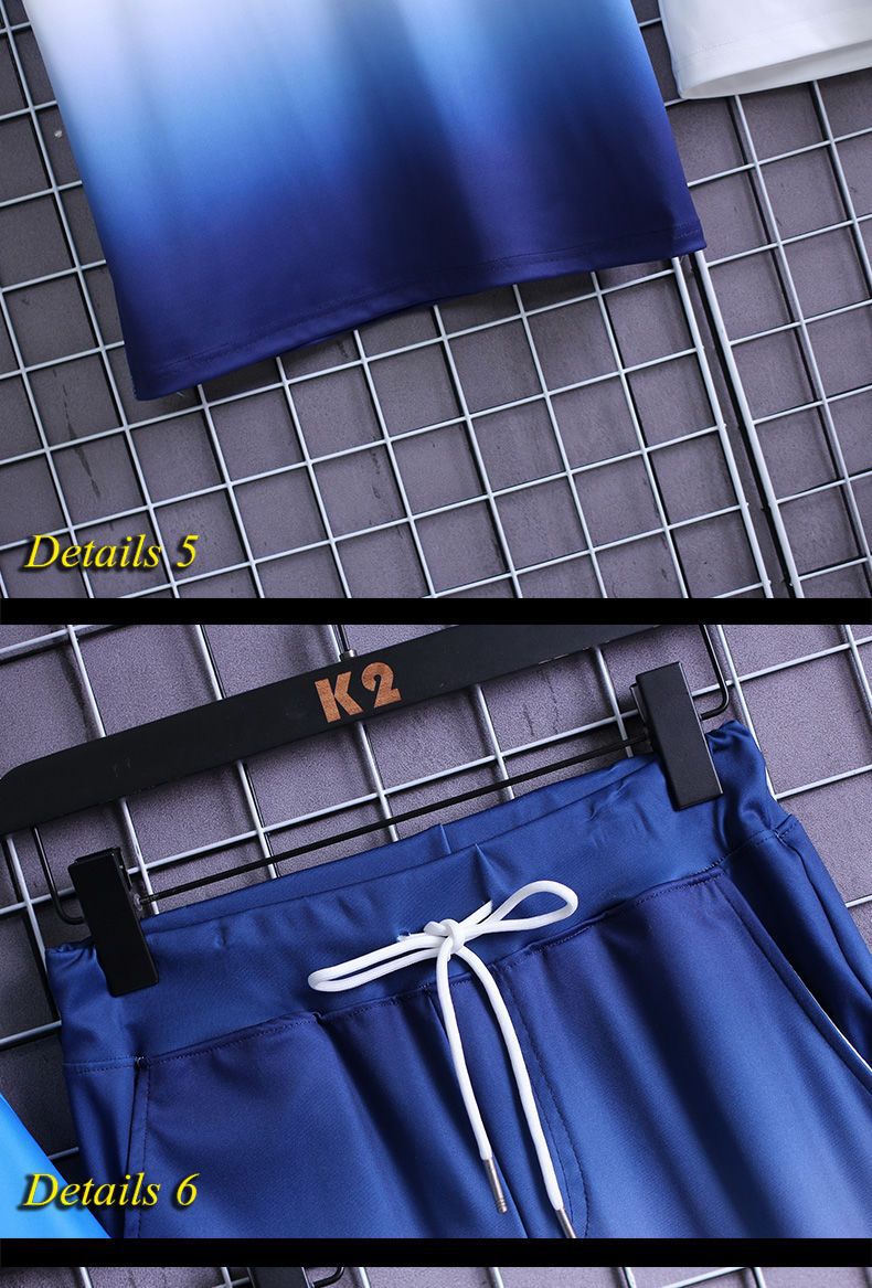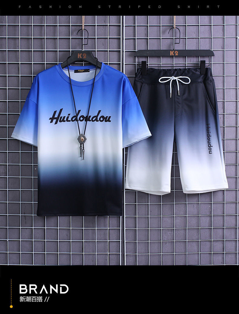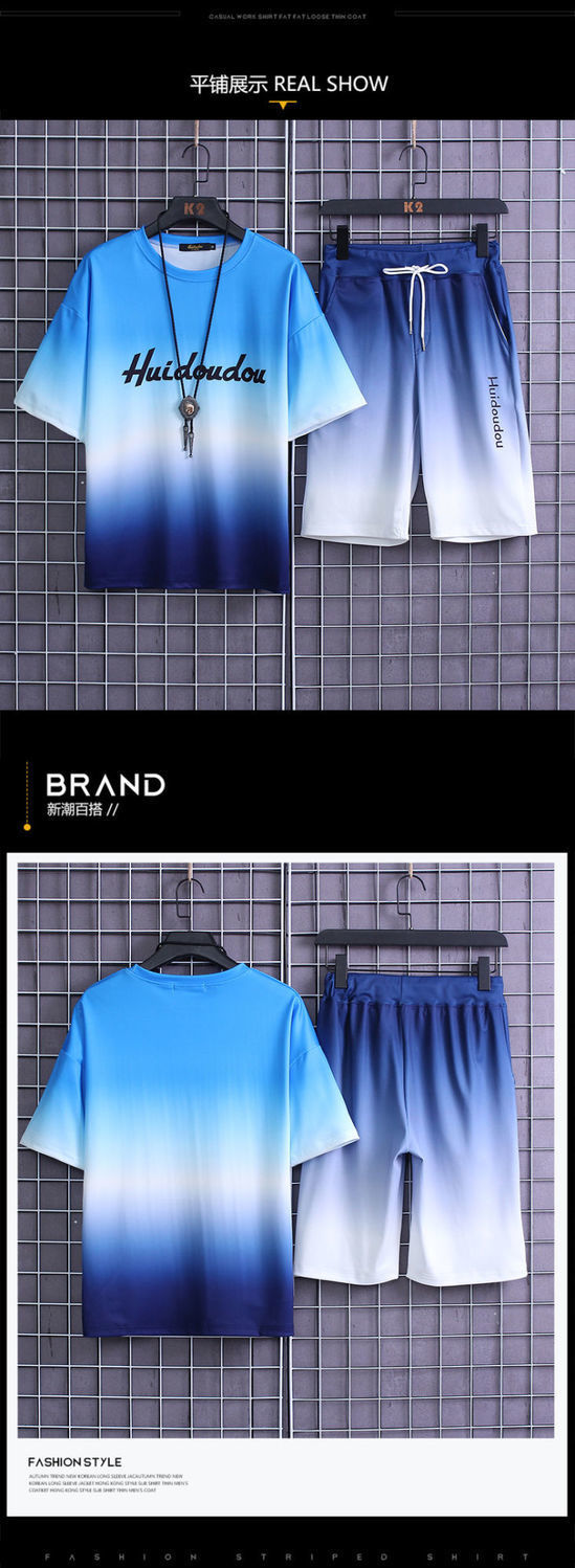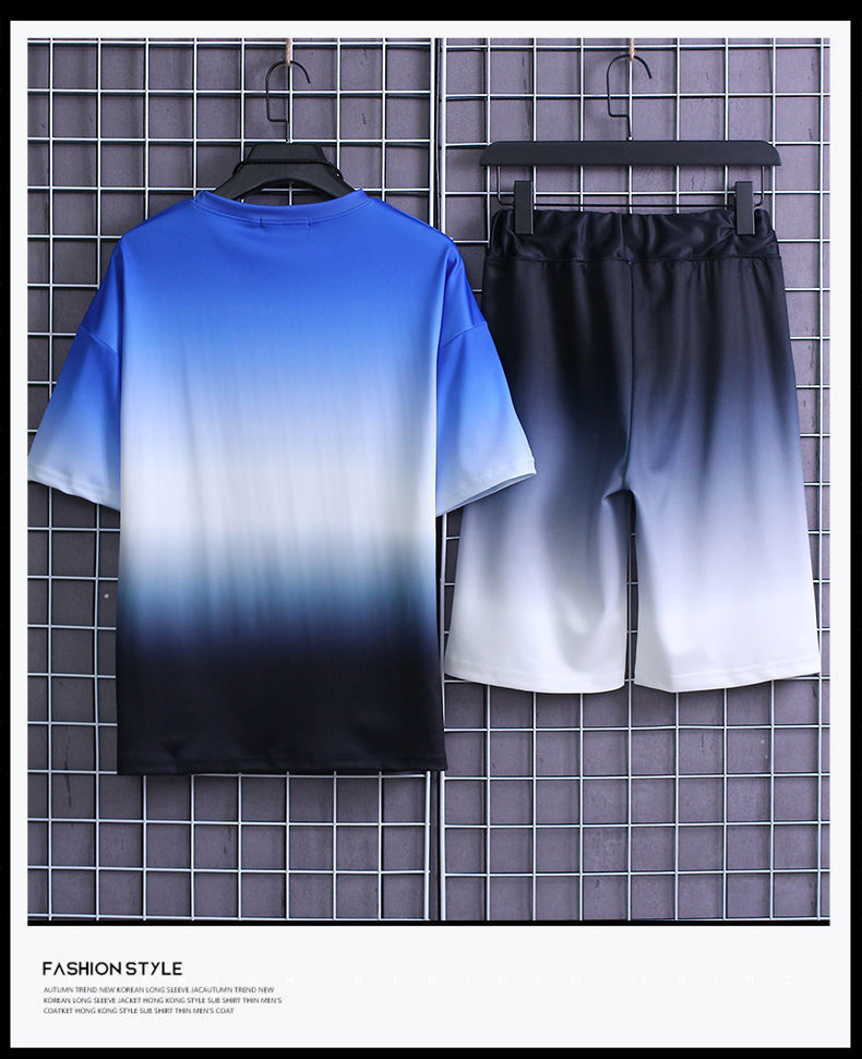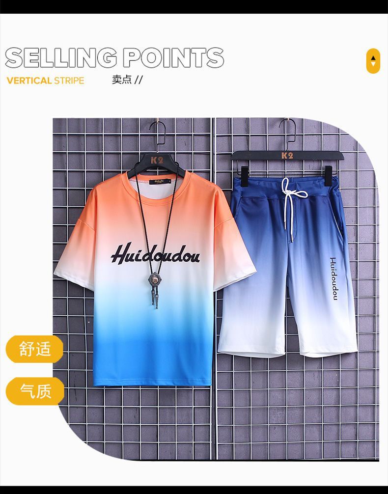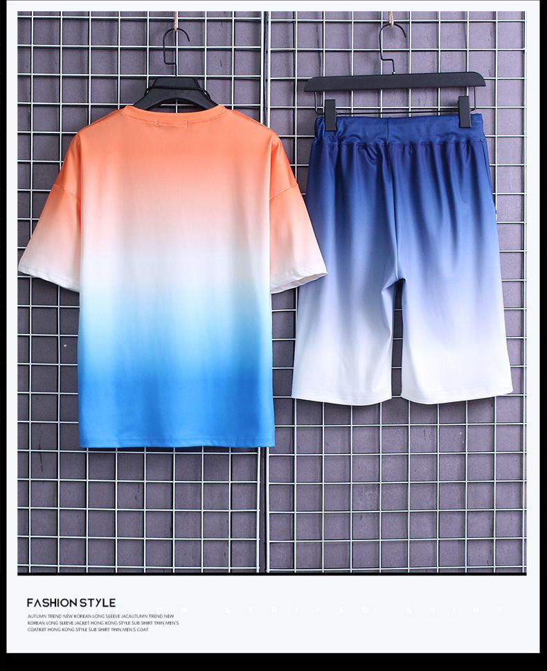 夏季套装男士运动冰丝速干短袖短裤韩版潮流渐变t恤一套磊红스토어 가기