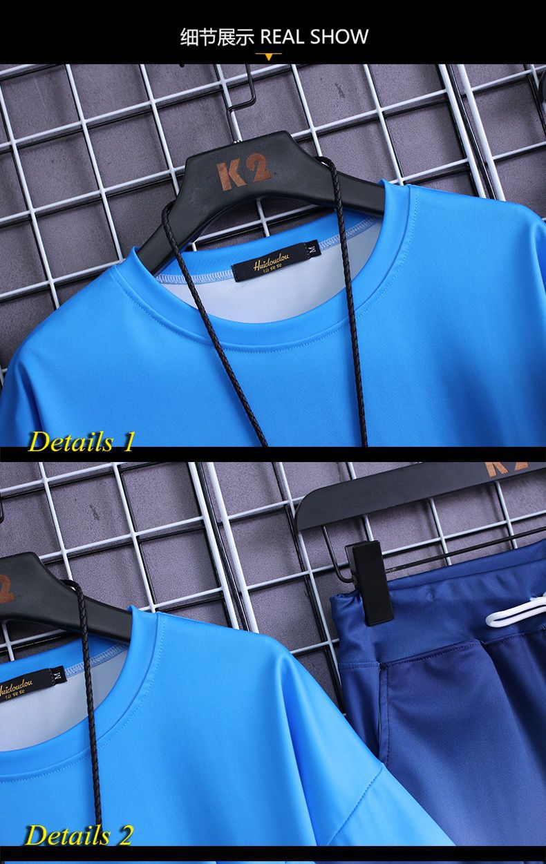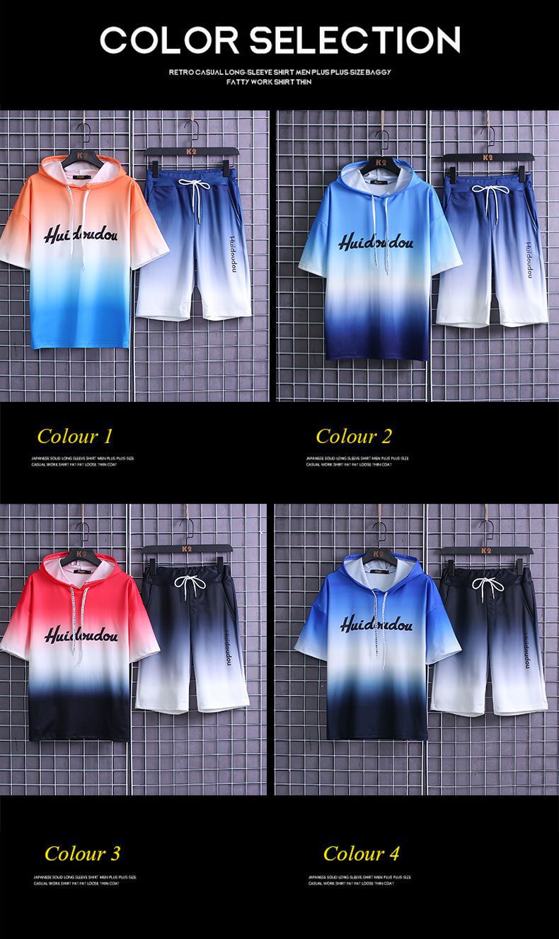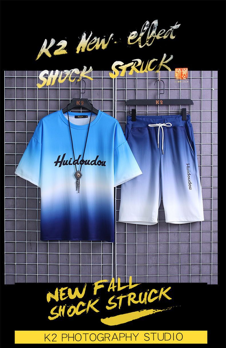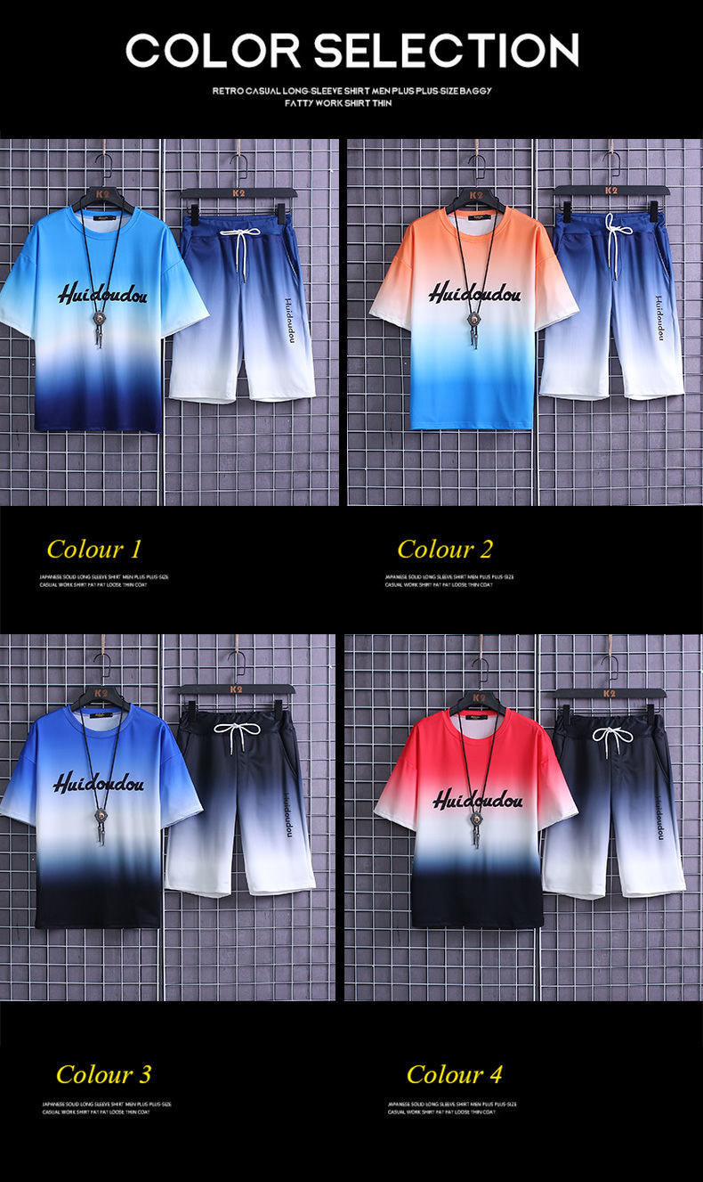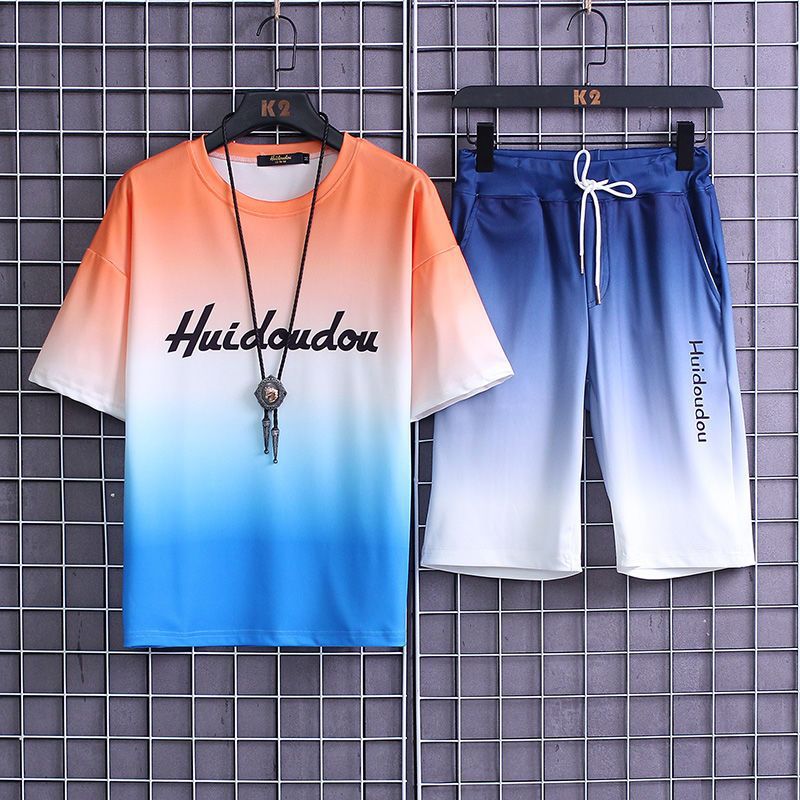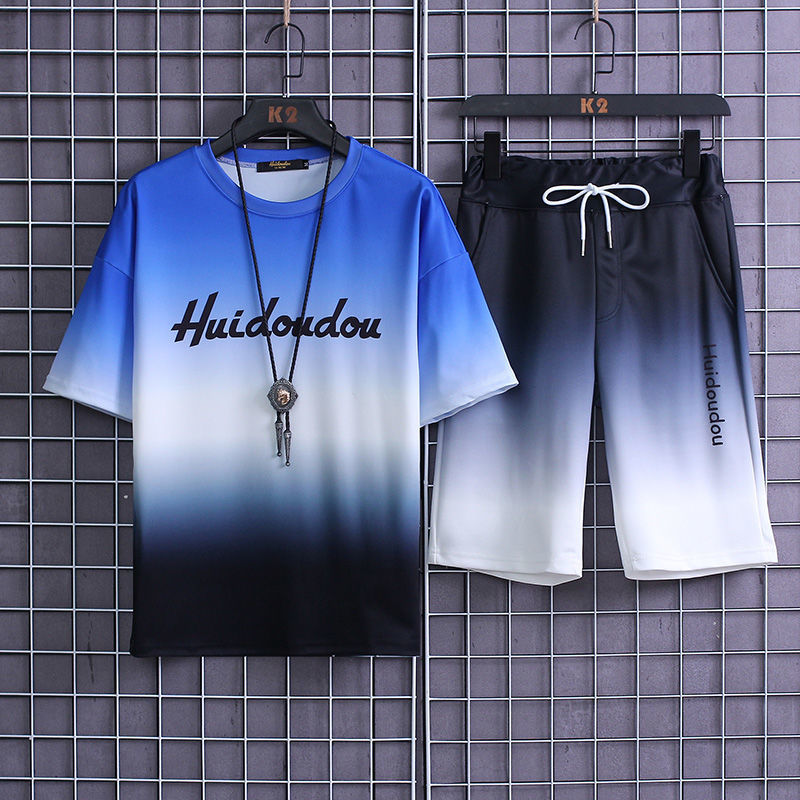 夏季套装男士运动冰丝速干短袖短裤韩版潮流渐变t恤一套磊红스토어 가기