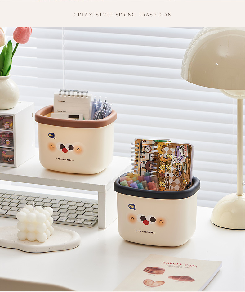 귀여운 소형 미니 탁상용 쓰레기통, 가정용, 어린이 책상, 기숙사, 사무실용 종이통, 만화풍 귀여움