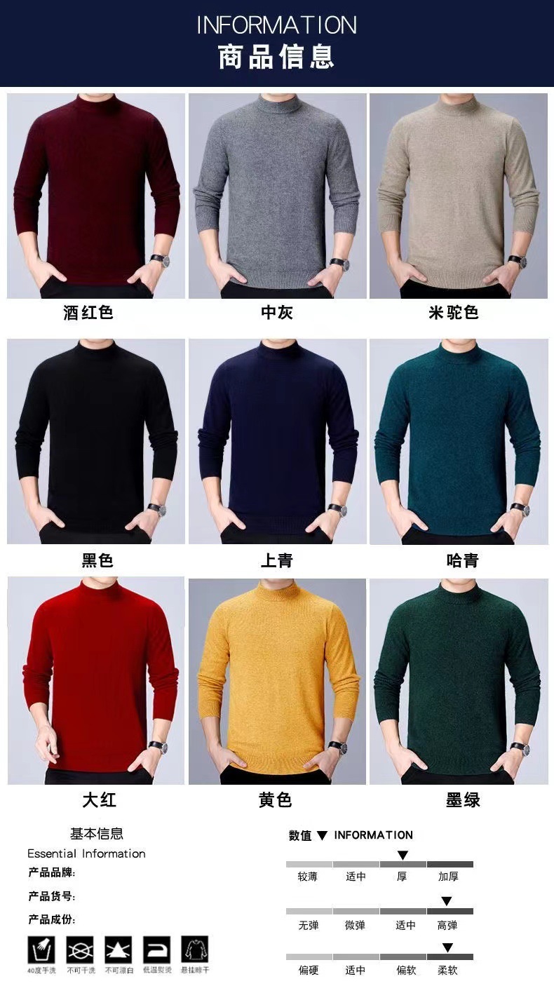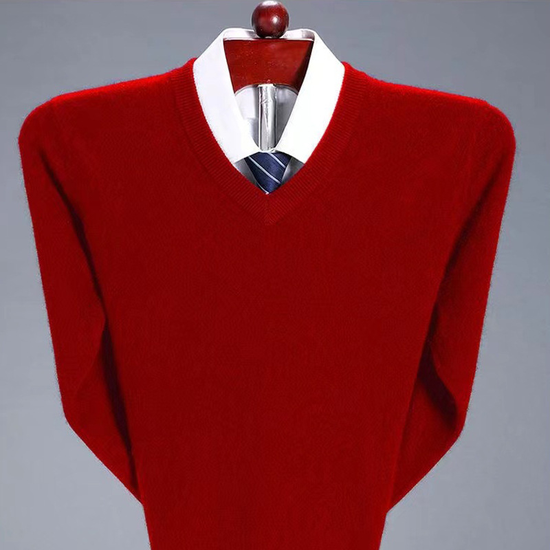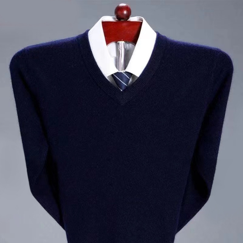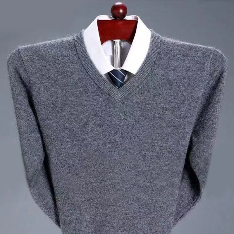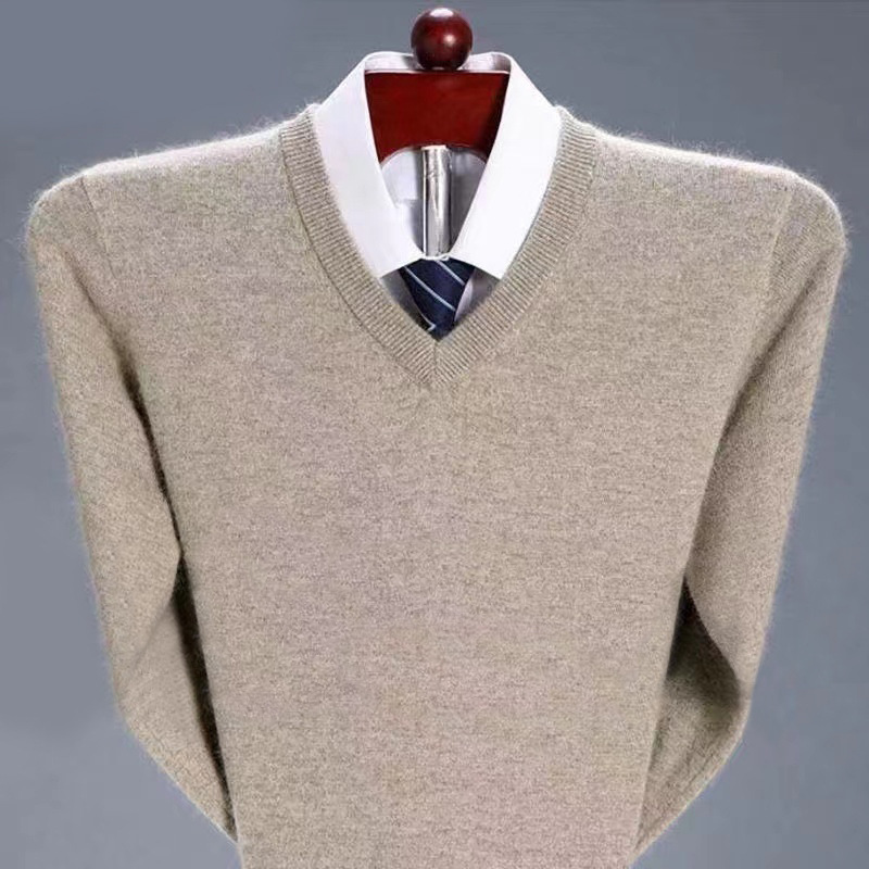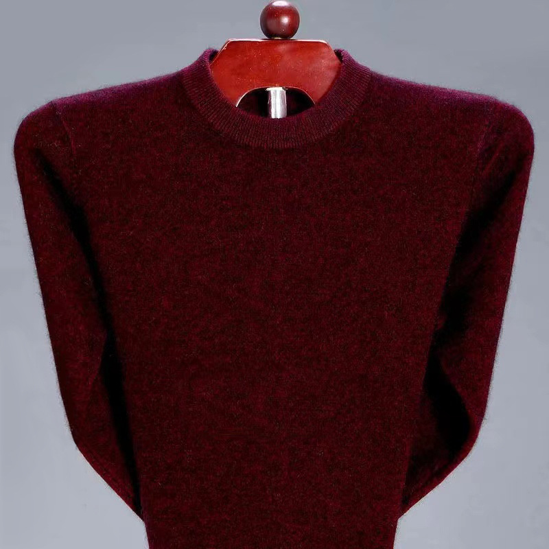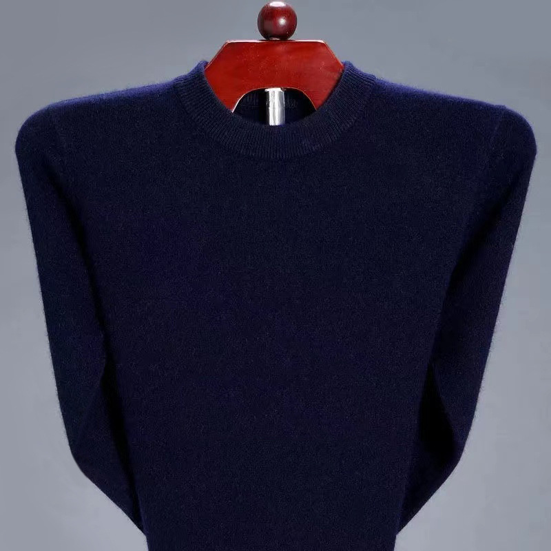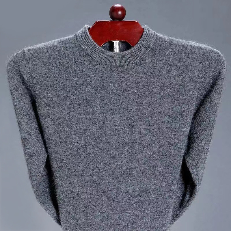 Ordos 캐시미어 스웨터 남성용 두꺼운 니트 울 중년 라운드 넥 스웨터 아빠스토어 가기