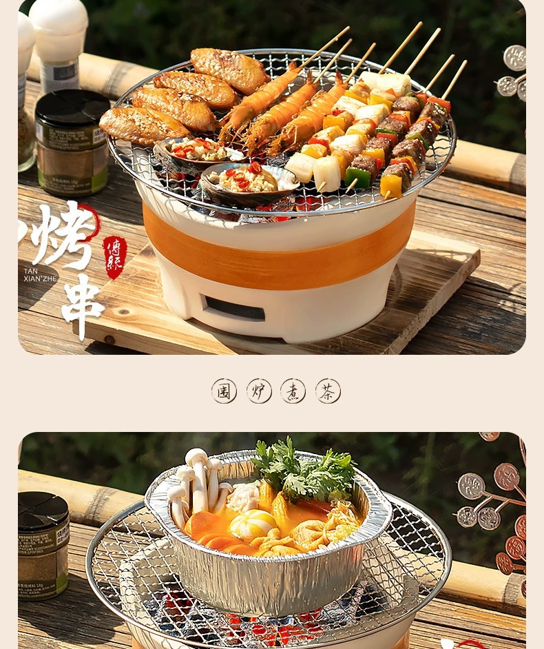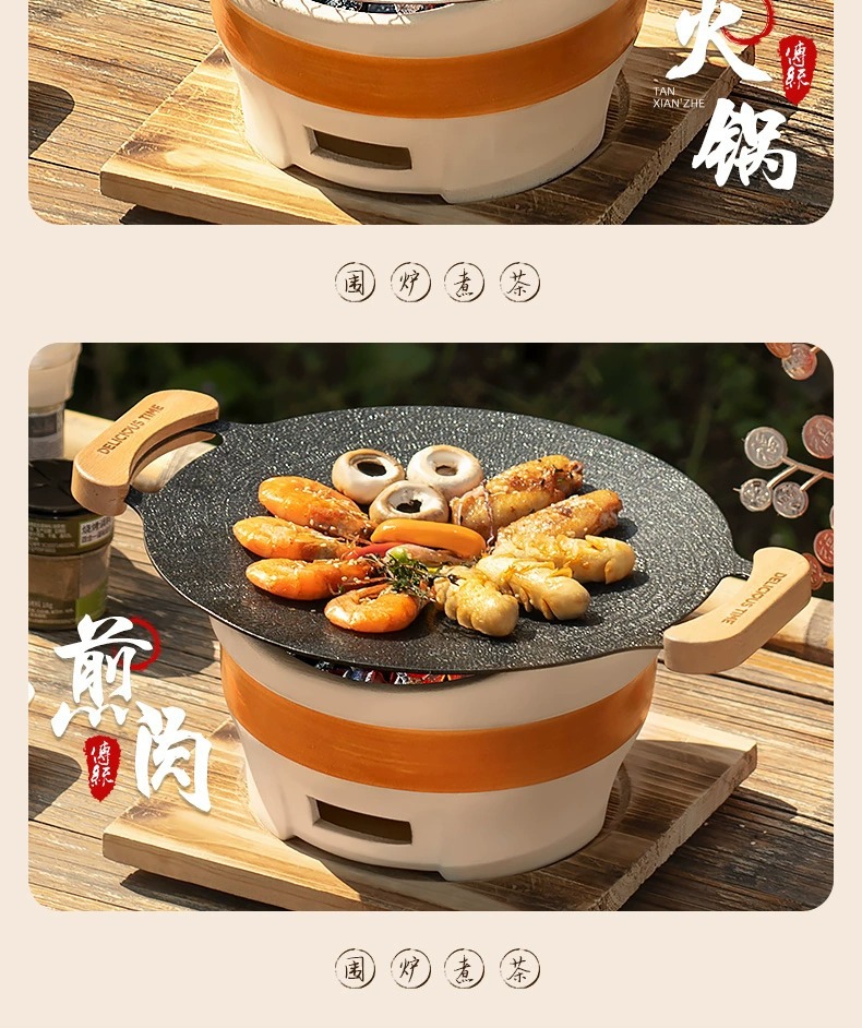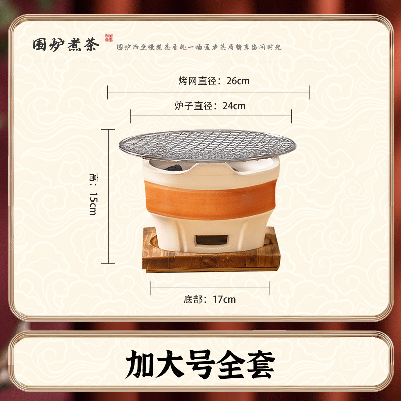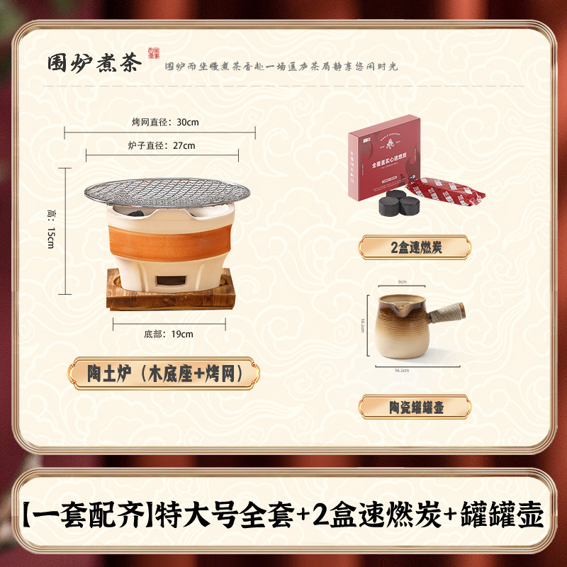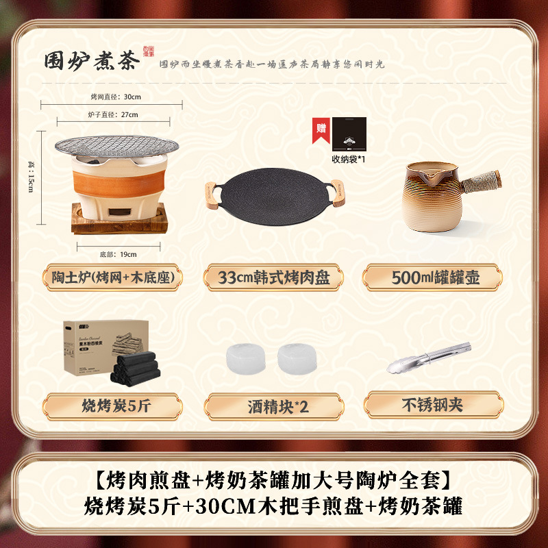 • [바비큐 프라이팬 + 구운 밀크티 캔 초대형 세라믹 스토브 전체 세트] 2.5kg 숯 + 30CM 나무 손잡이