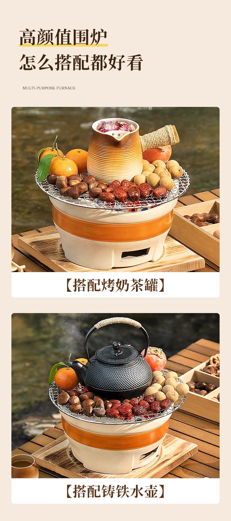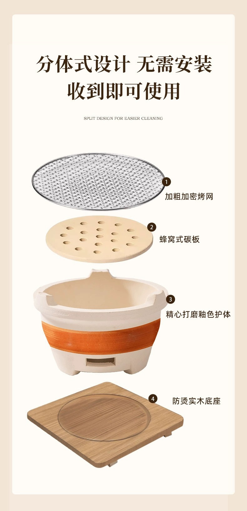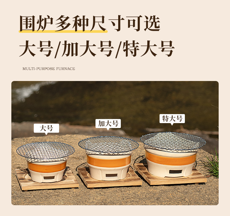 • [바비큐 프라이팬 + 구운 밀크티 캔 초대형 세라믹 스토브 전체 세트] 2.5kg 숯 + 30CM 나무 손잡이
