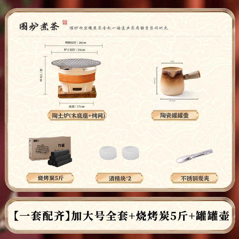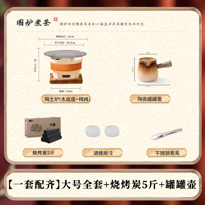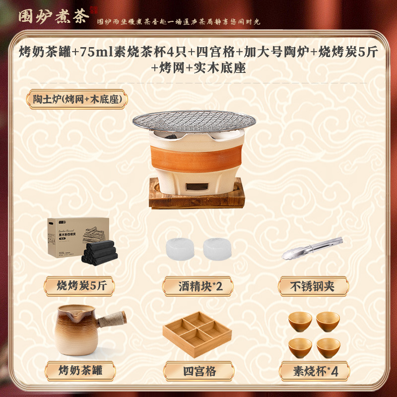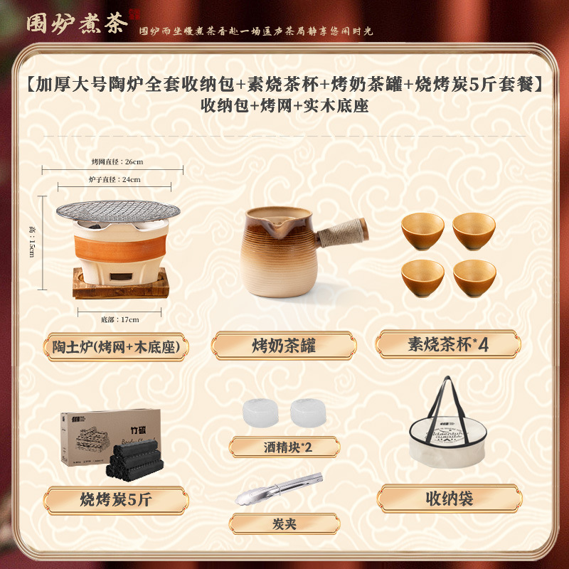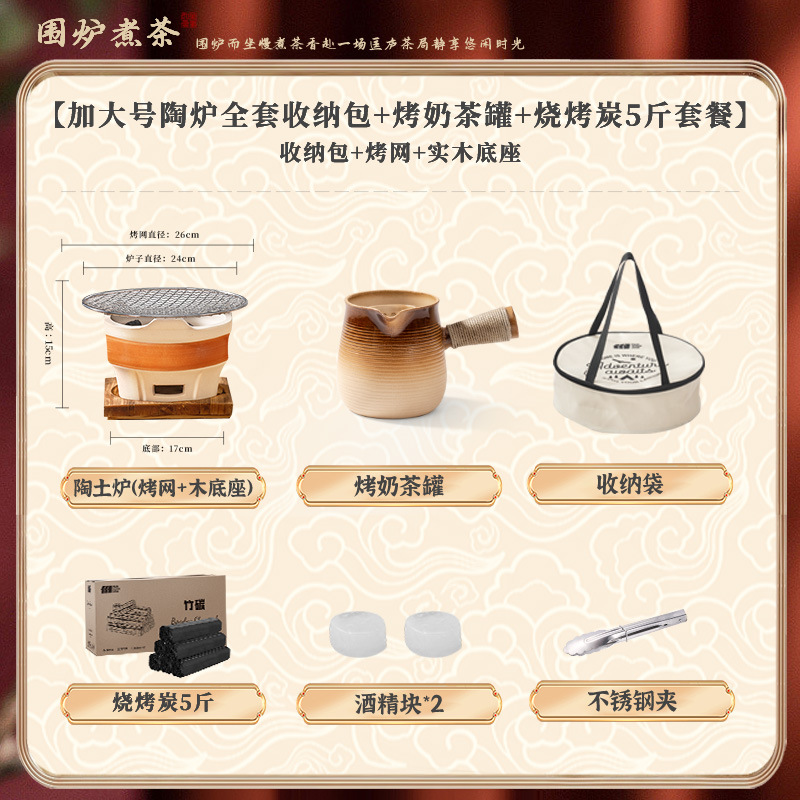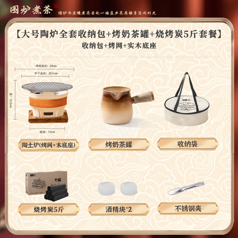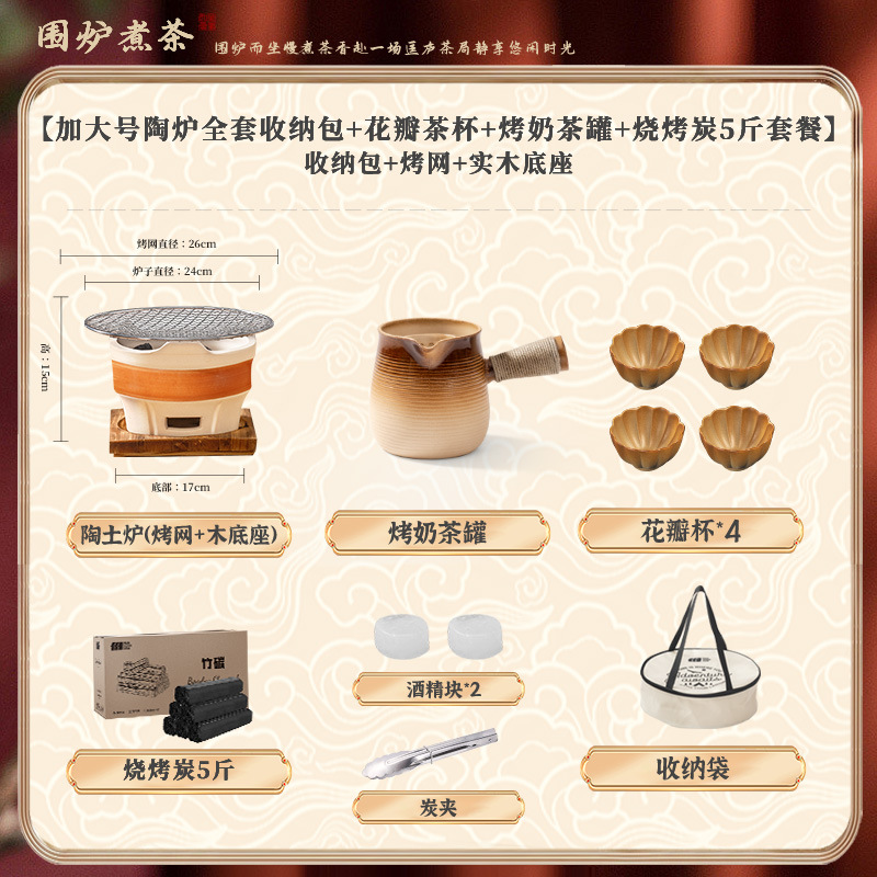 • [대형 세라믹 스토브 전체 보관 가방 + 꽃잎 찻잔 + 구운 밀크티 캔 + 2.5kg 숯 패키지