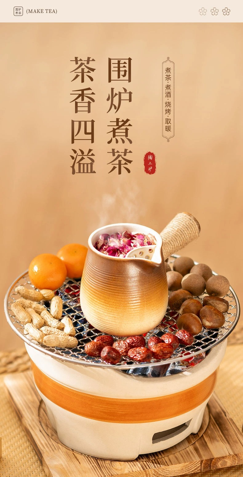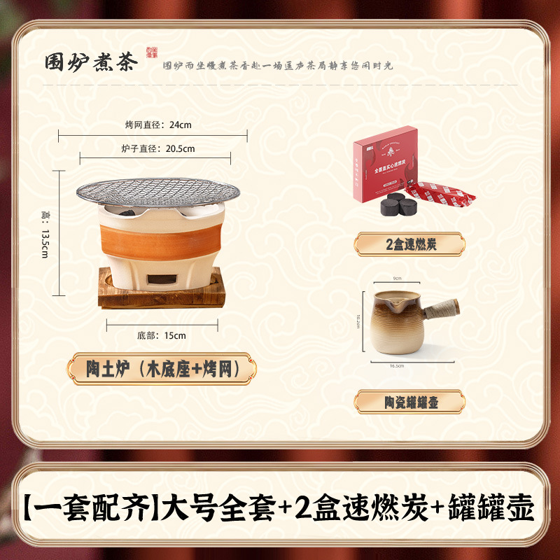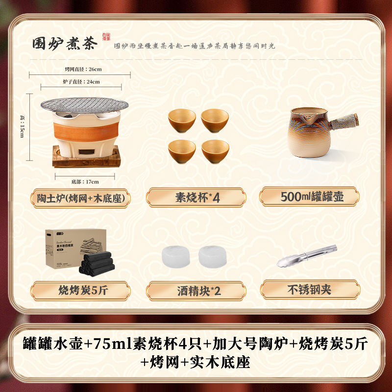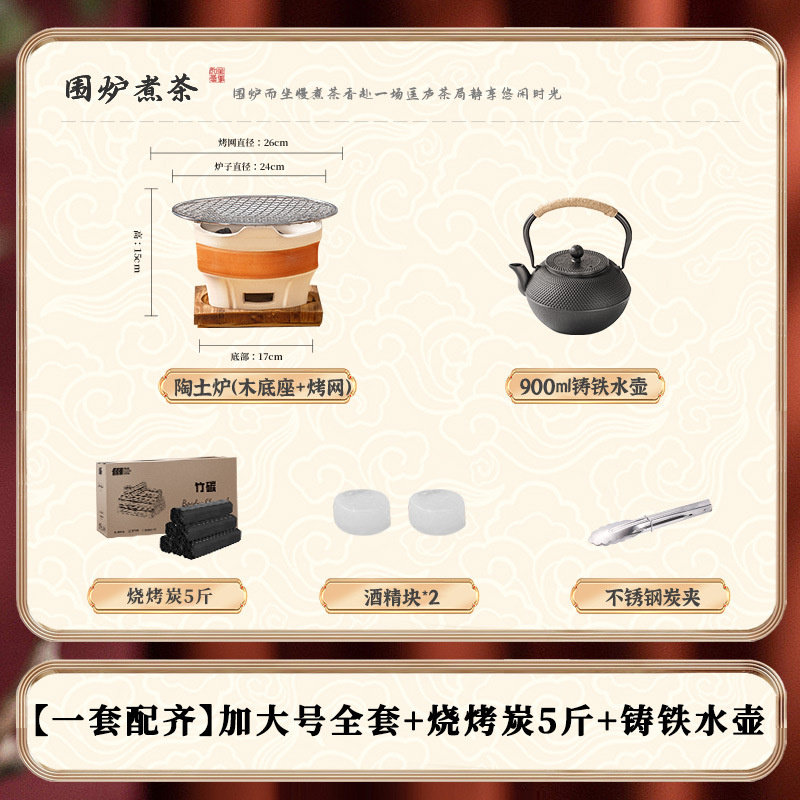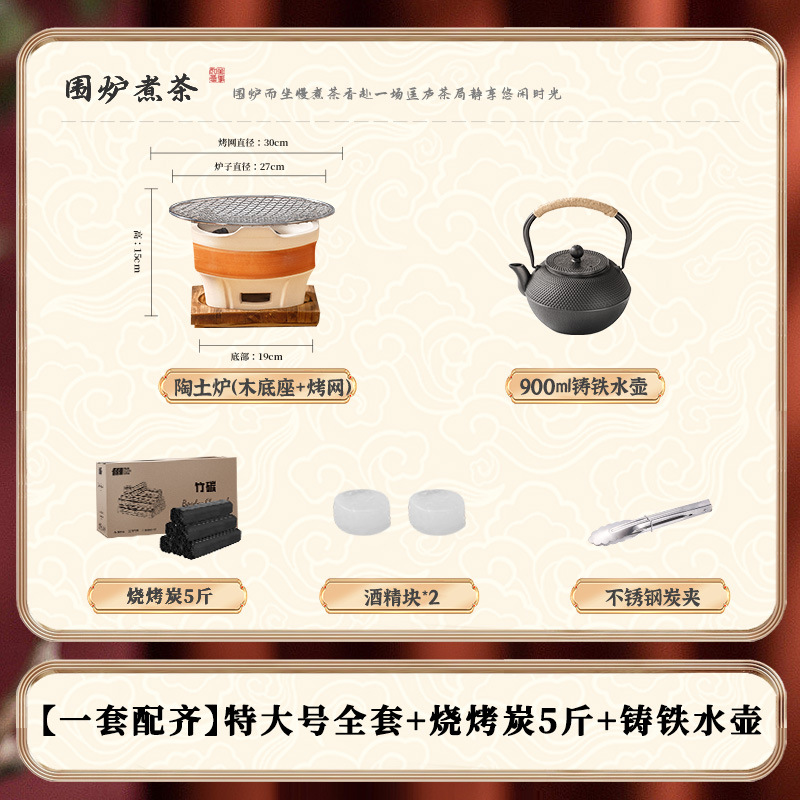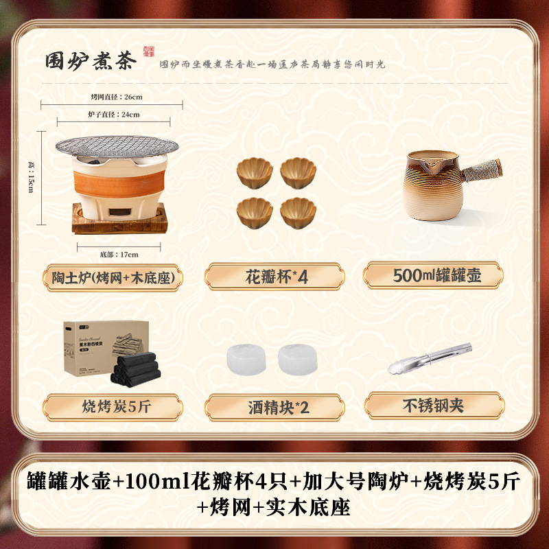 • [대형 세라믹 스토브 전체 보관 가방 + 꽃잎 찻잔 + 구운 밀크티 캔 + 2.5kg 숯 패키지