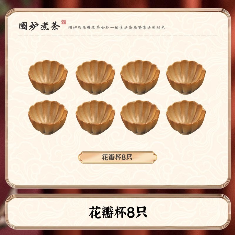 • [꽃잎 찻잔 + 구운 밀크티 캔, 초대형 세라믹 스토브 전체 세트] 꽃잎 찻잔 4개 + 구운