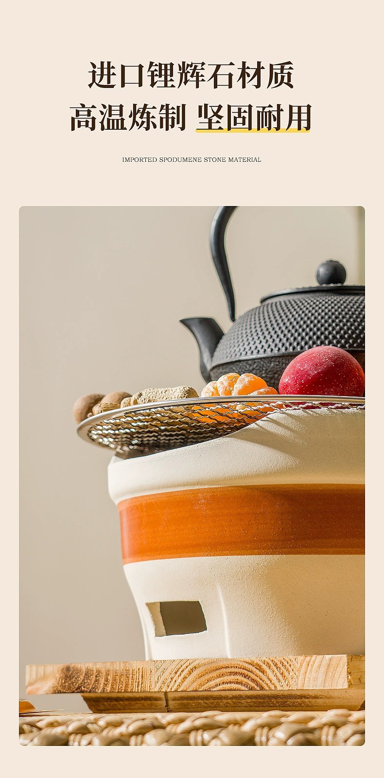 • [바비큐 프라이팬 + 구운 밀크티 캔 초대형 세라믹 스토브 전체 세트] 2.5kg 숯 + 33CM 나무 손잡이