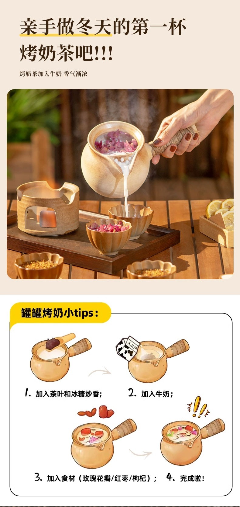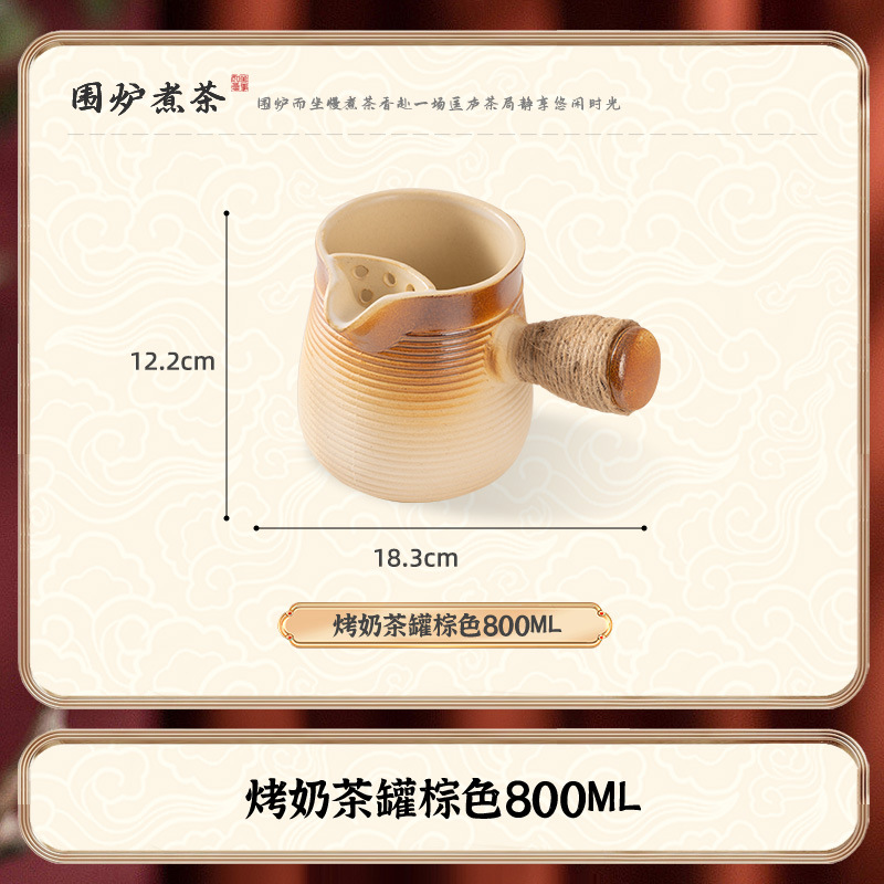 • [베이지 찻잔 + 구운 밀크티 캔, 초대형 세라믹 스토브 전체 세트] 베이크드 찻잔 4개 + 구운 찻잔