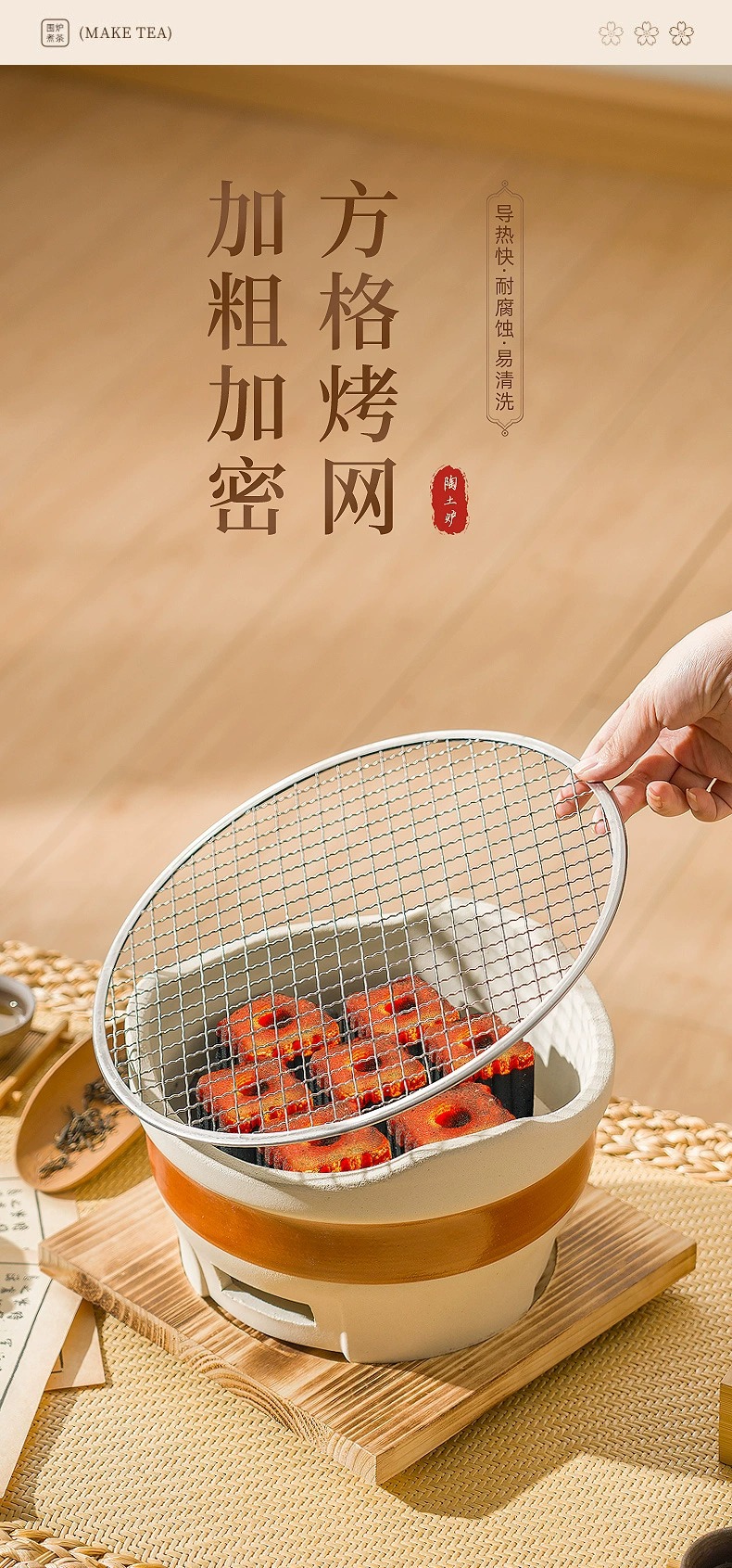 • [그릴망 베이스 모델] 중형 세라믹 스토브 + 그릴망 + 원목 베이스