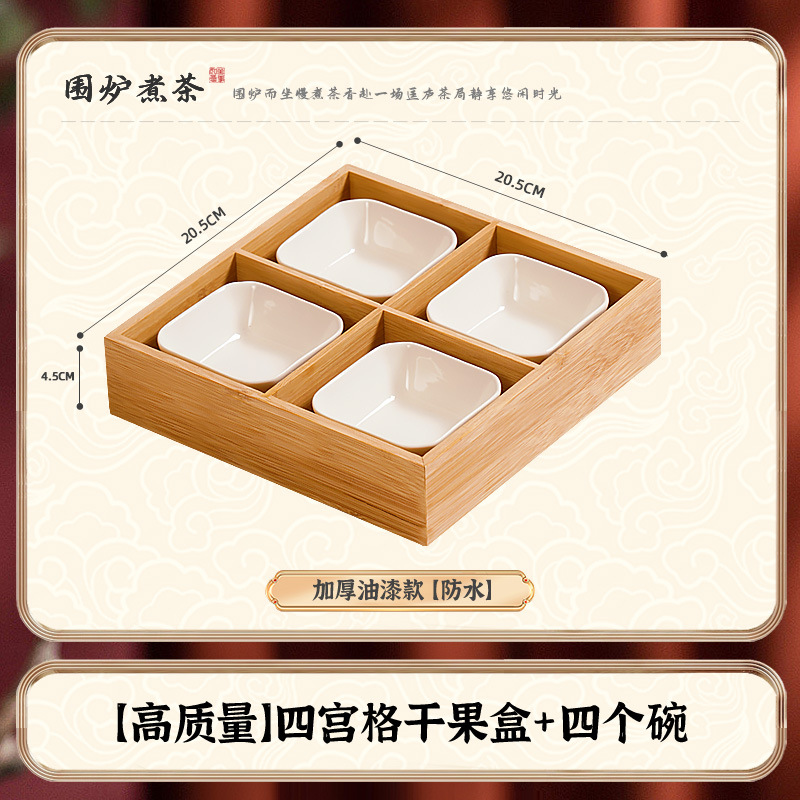 • 걸쭉한 디저트 말린 과일 접시 - 4각형 격자 + 4그릇