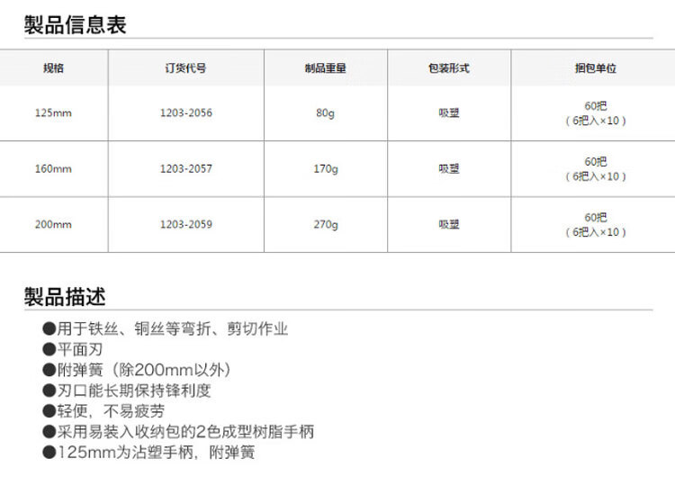 • 표준 니들 노즈 플라이어 125 1203-2056