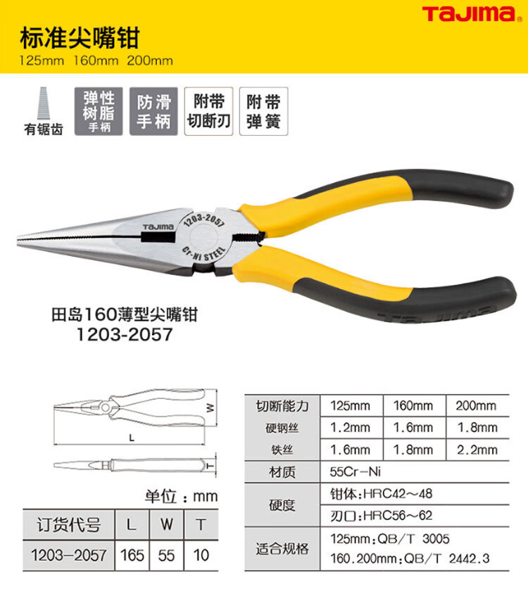 타지 마 TAJIMA 부 표준 뾰족한 코 펜치 125mm 1203-2056