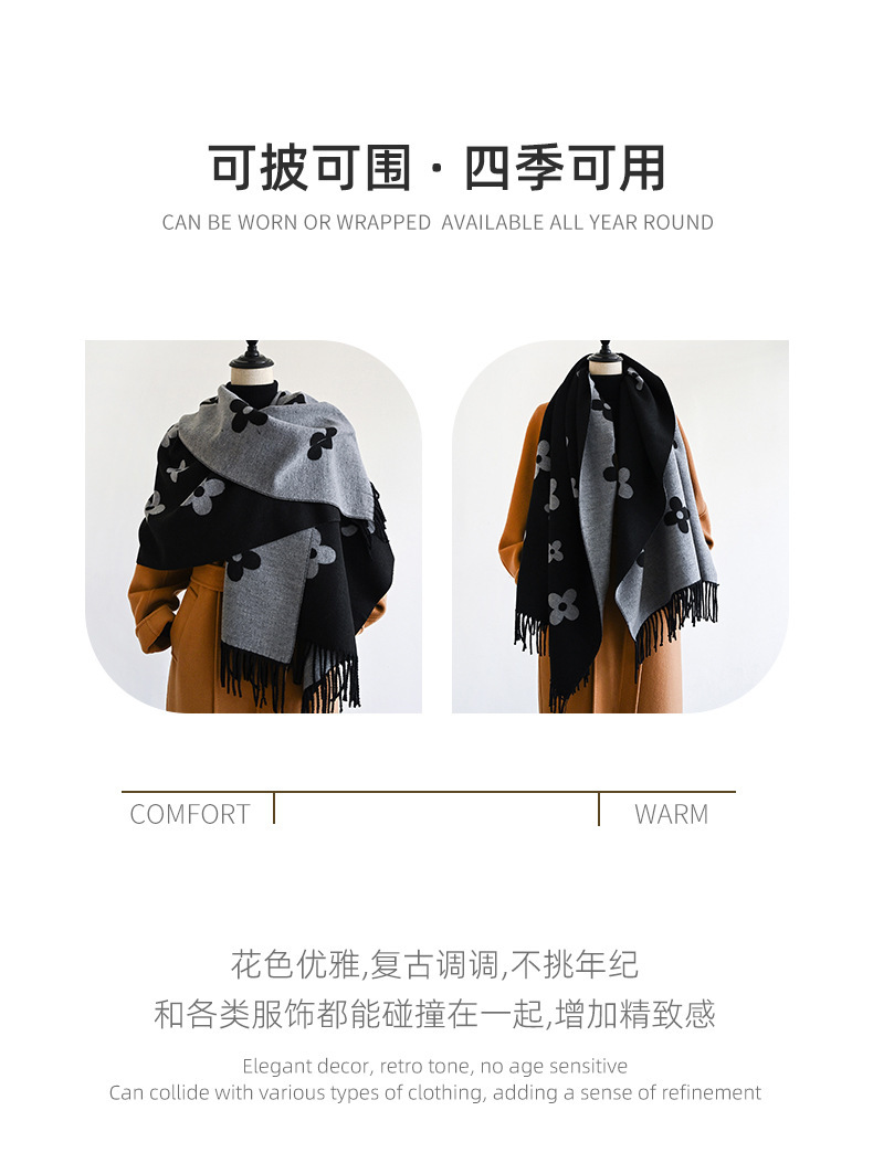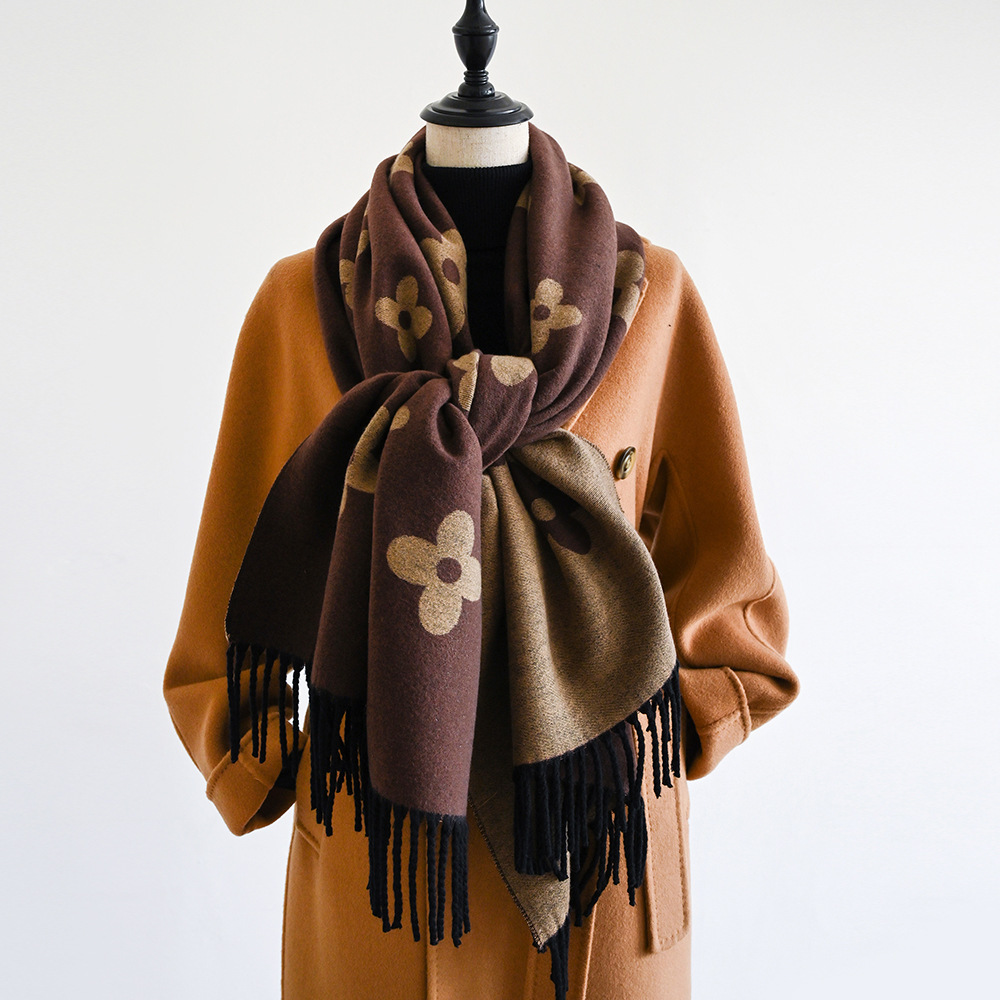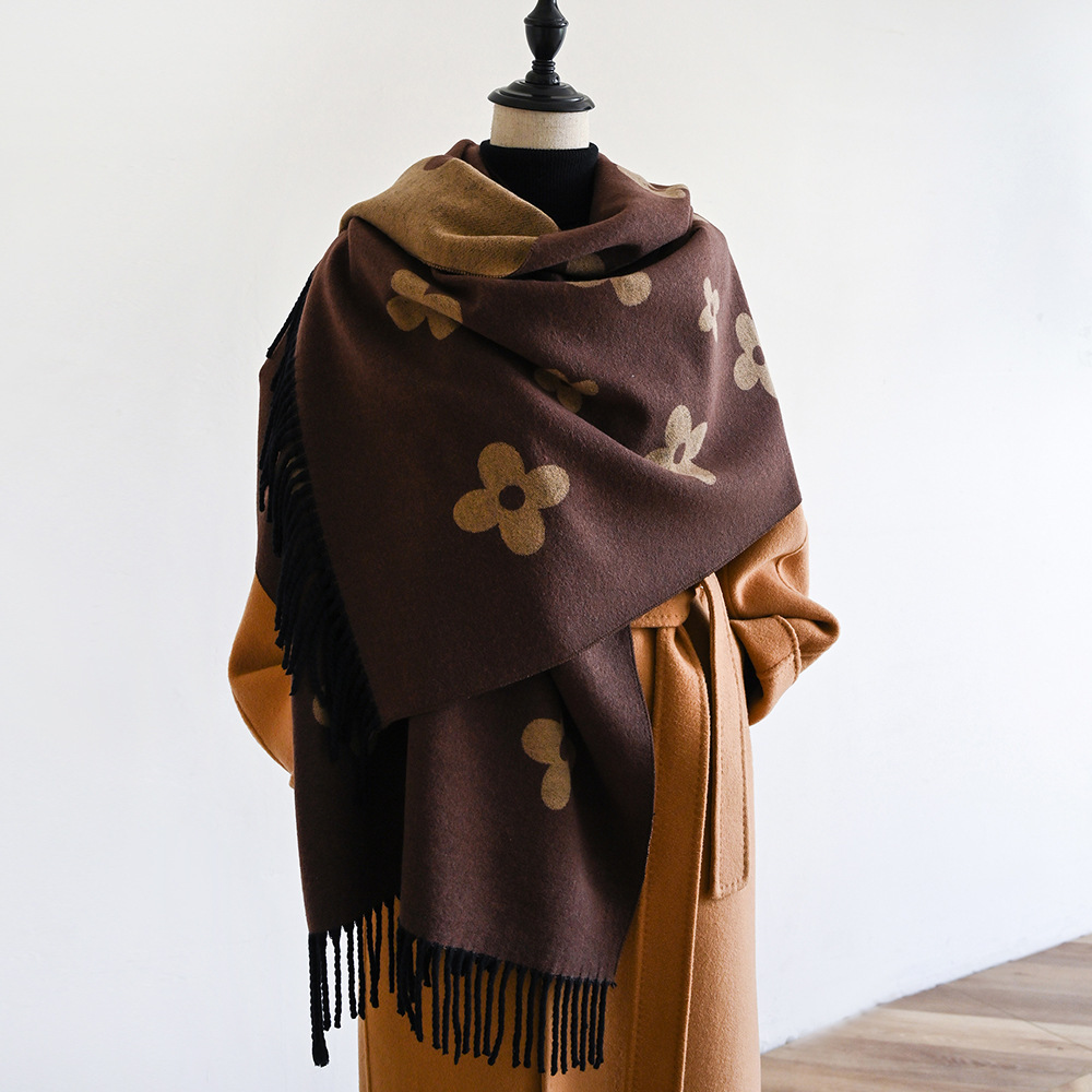 유럽과 미국의 고급 다크 브라운 양면 술 스카프 여성용 겨울 목도리 이중 사용 한국식 다재다능한 모조 캐시미어 양면 두껍게