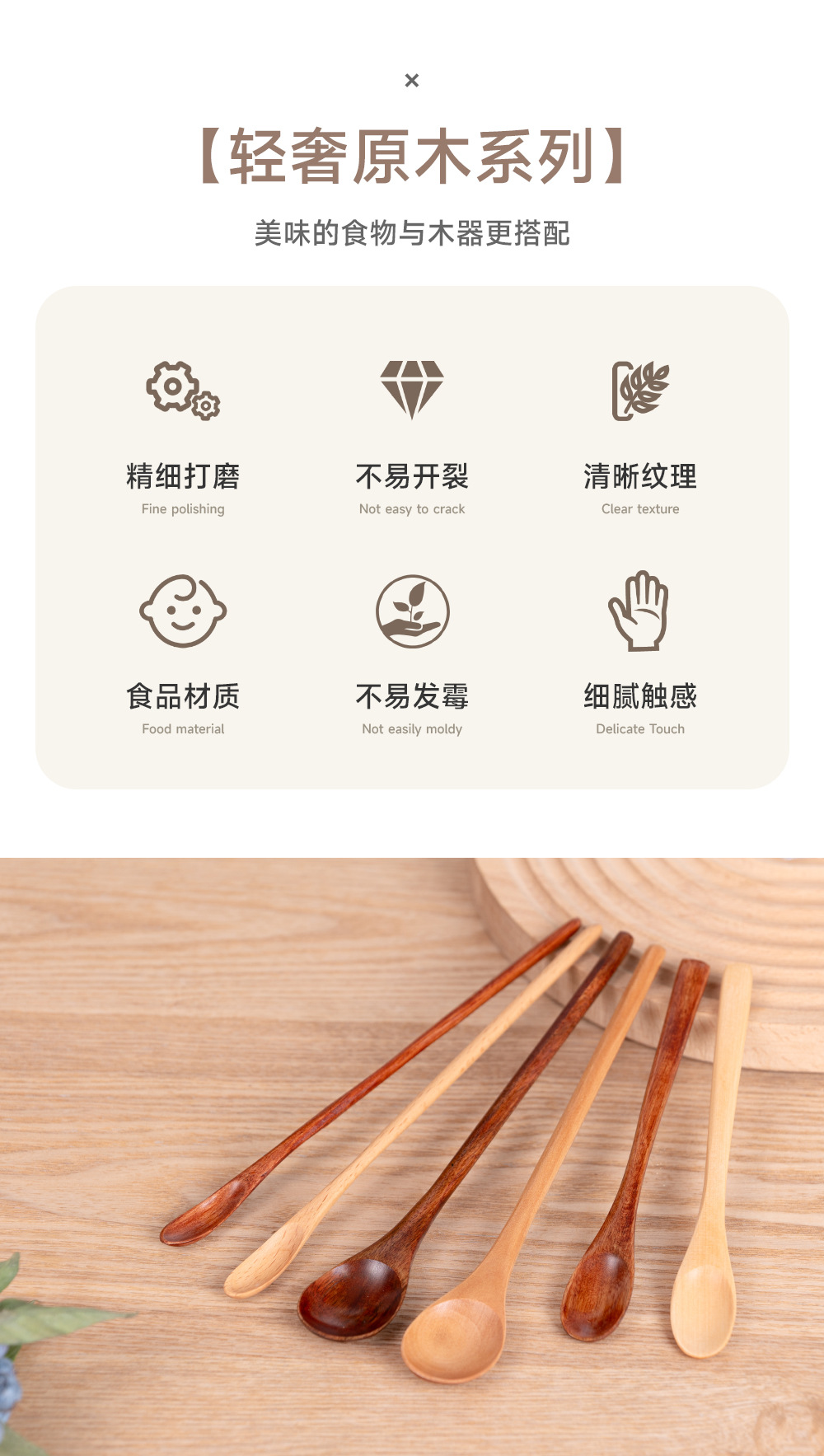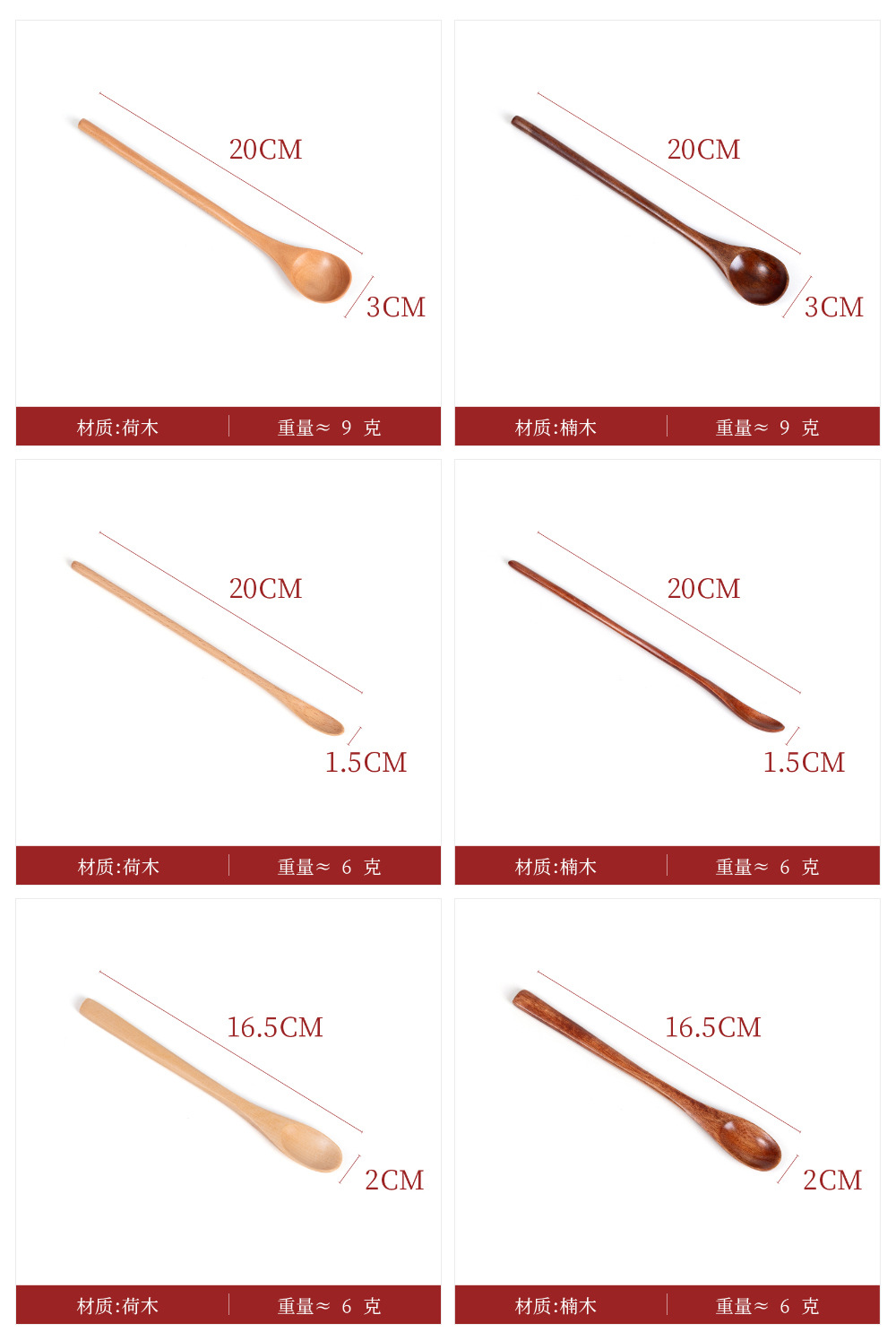 나무숟가락, 믹싱스푼, 커피스푼, 긴 손잡이 꿀숟가락, 디저트숟가락, 일본식 차숟가락, 양념숟가락, 요리숟가락, 식기