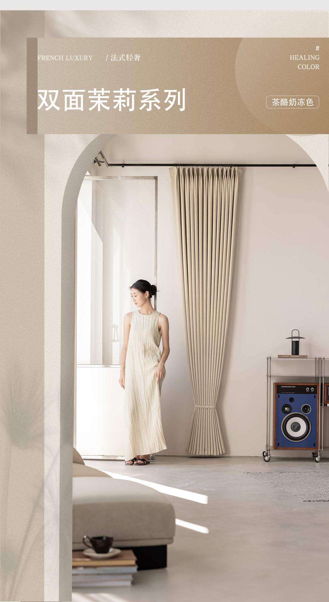 양면 자스민 2025 신상 프렌치 라이트 럭셔리 소흥 코치아오 거실 차양 셔닐 커튼 침실 고급스러운 느낌스토어 가기