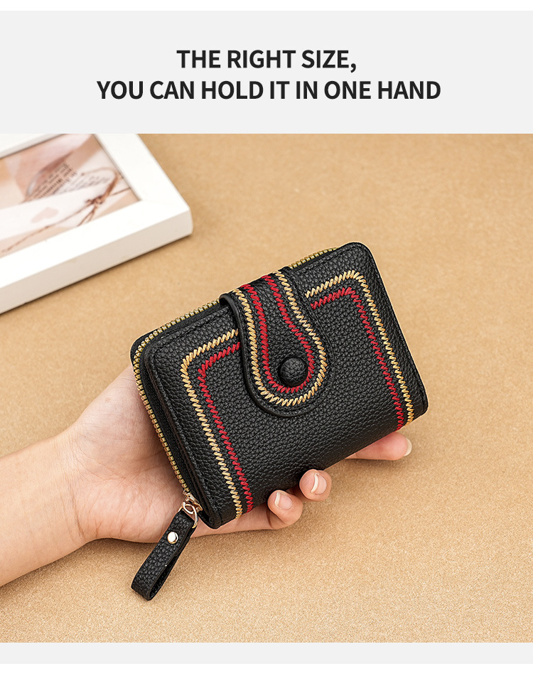 유럽과 미국의 국경 새 스타일 간단한 여성 짧은 지갑 홍콩 스타일 자수 지퍼 변경 카드 가방스토어 가기