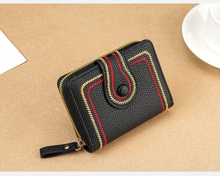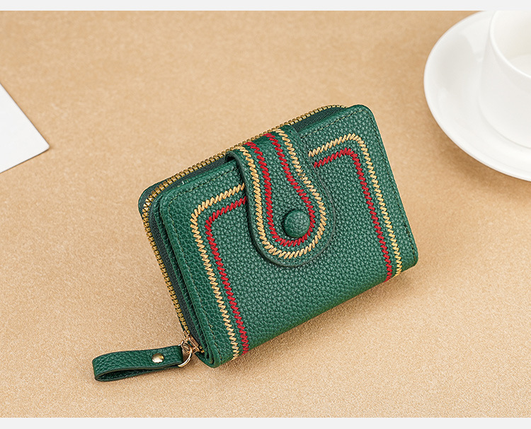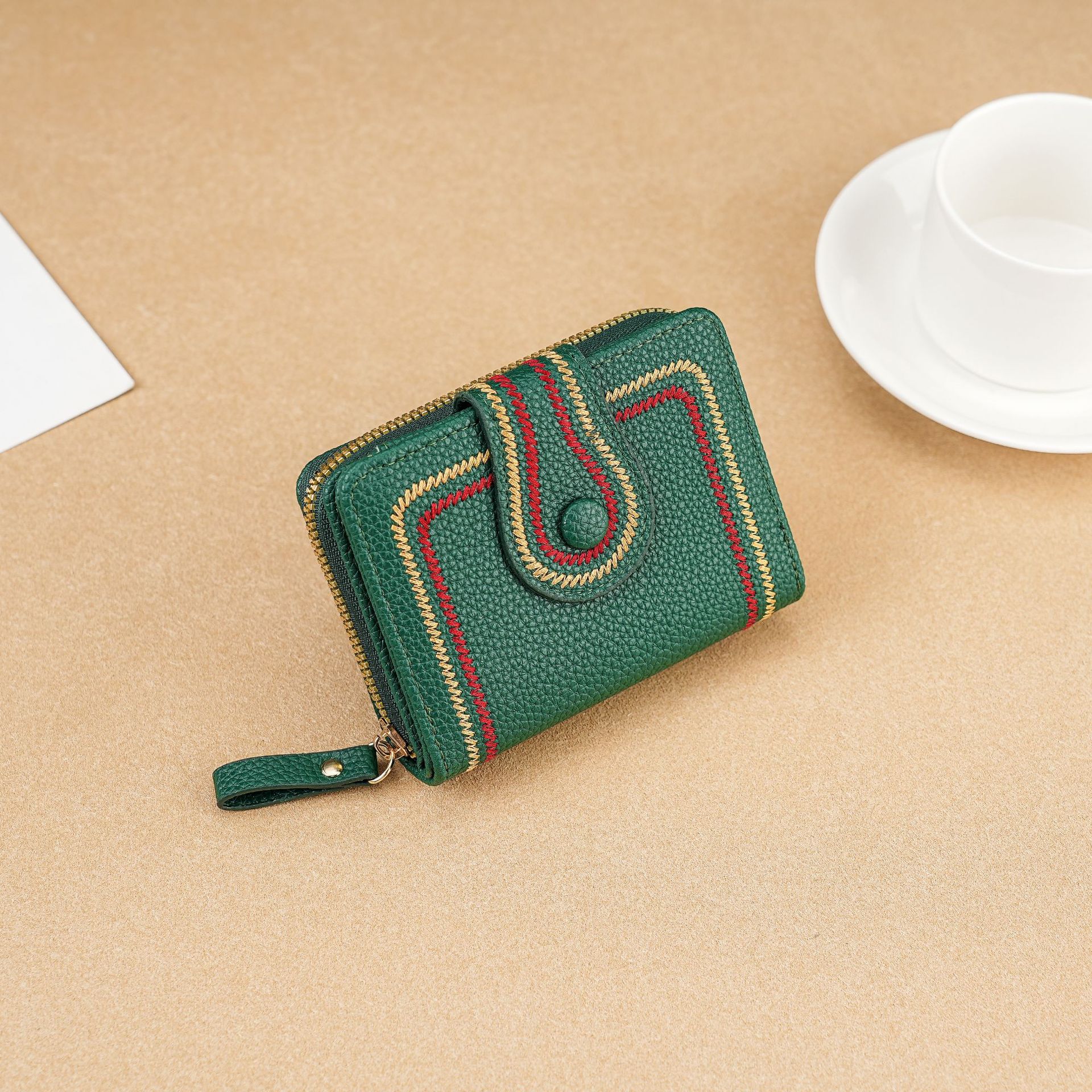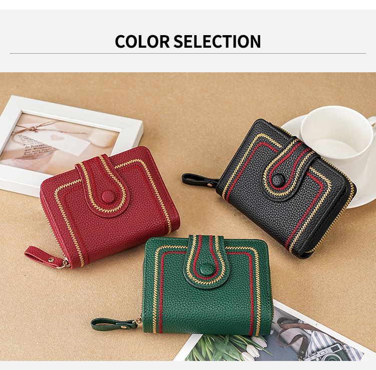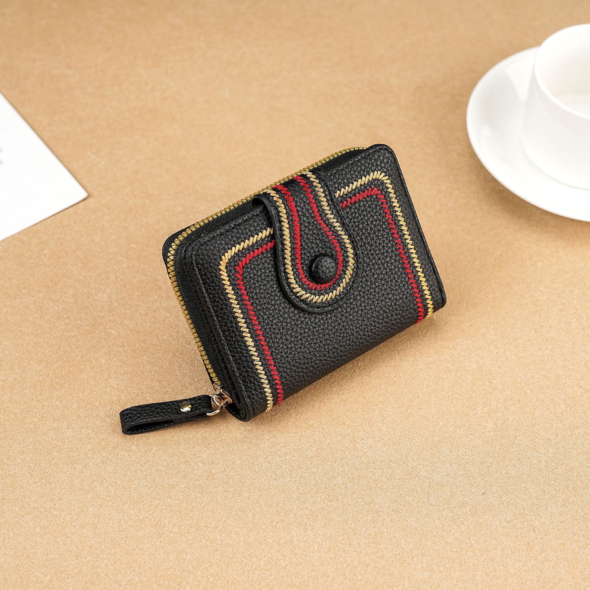 유럽과 미국의 국경 새 스타일 간단한 여성 짧은 지갑 홍콩 스타일 자수 지퍼 변경 카드 가방