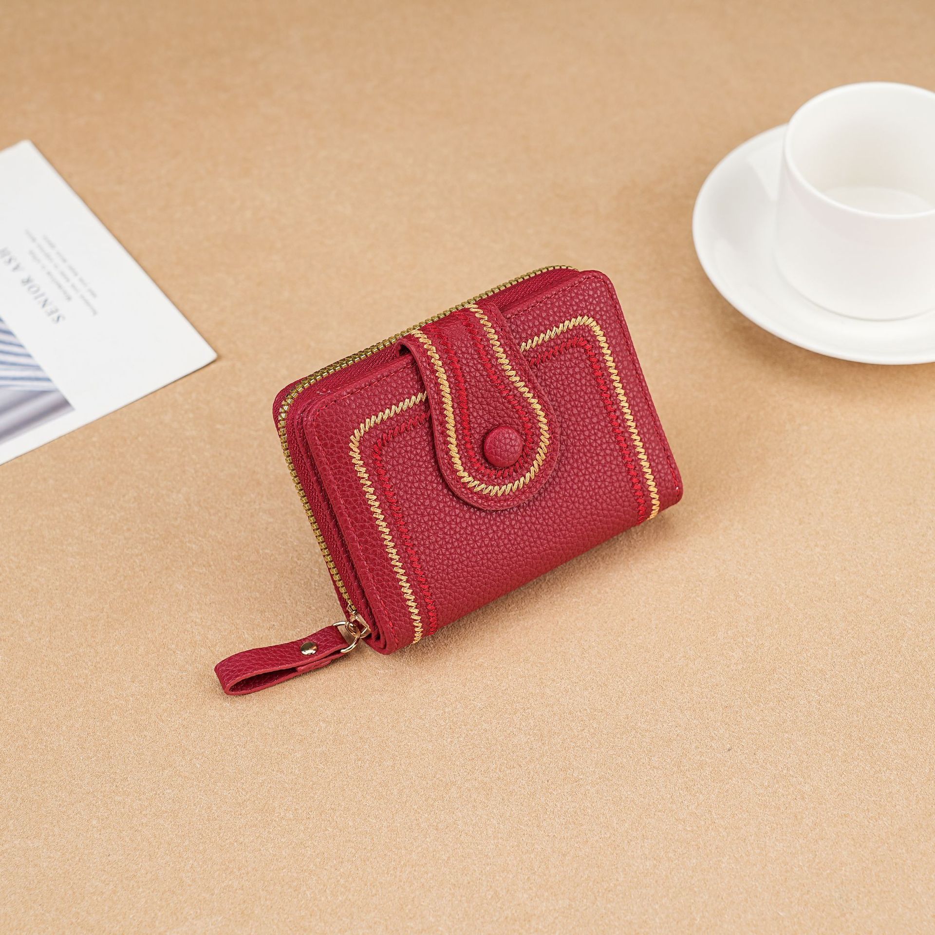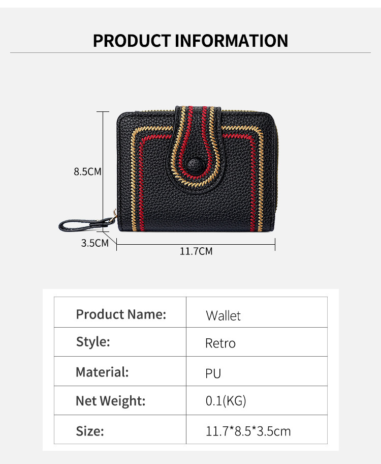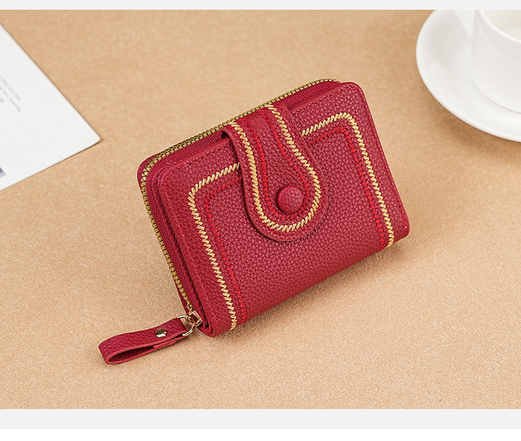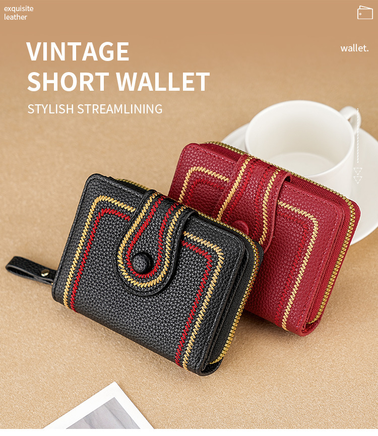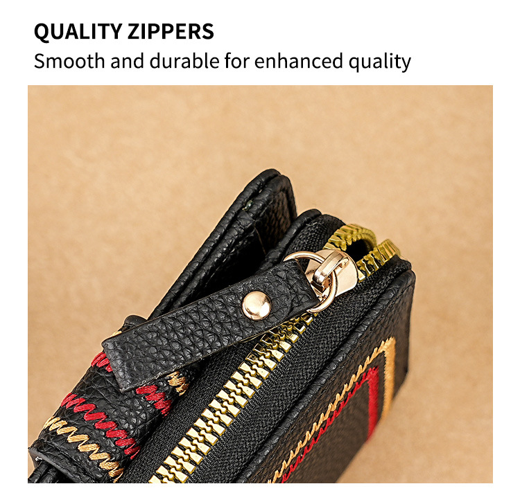 유럽과 미국의 국경 새 스타일 간단한 여성 짧은 지갑 홍콩 스타일 자수 지퍼 변경 카드 가방
