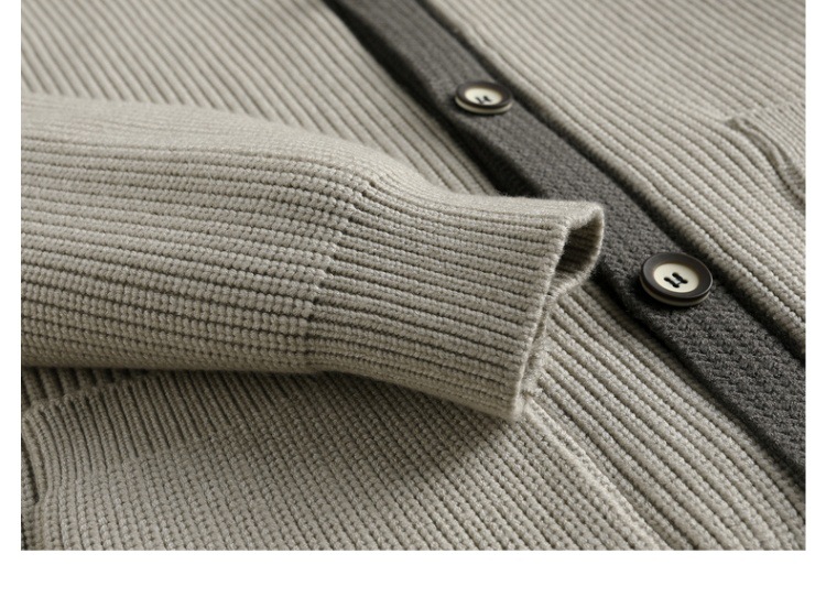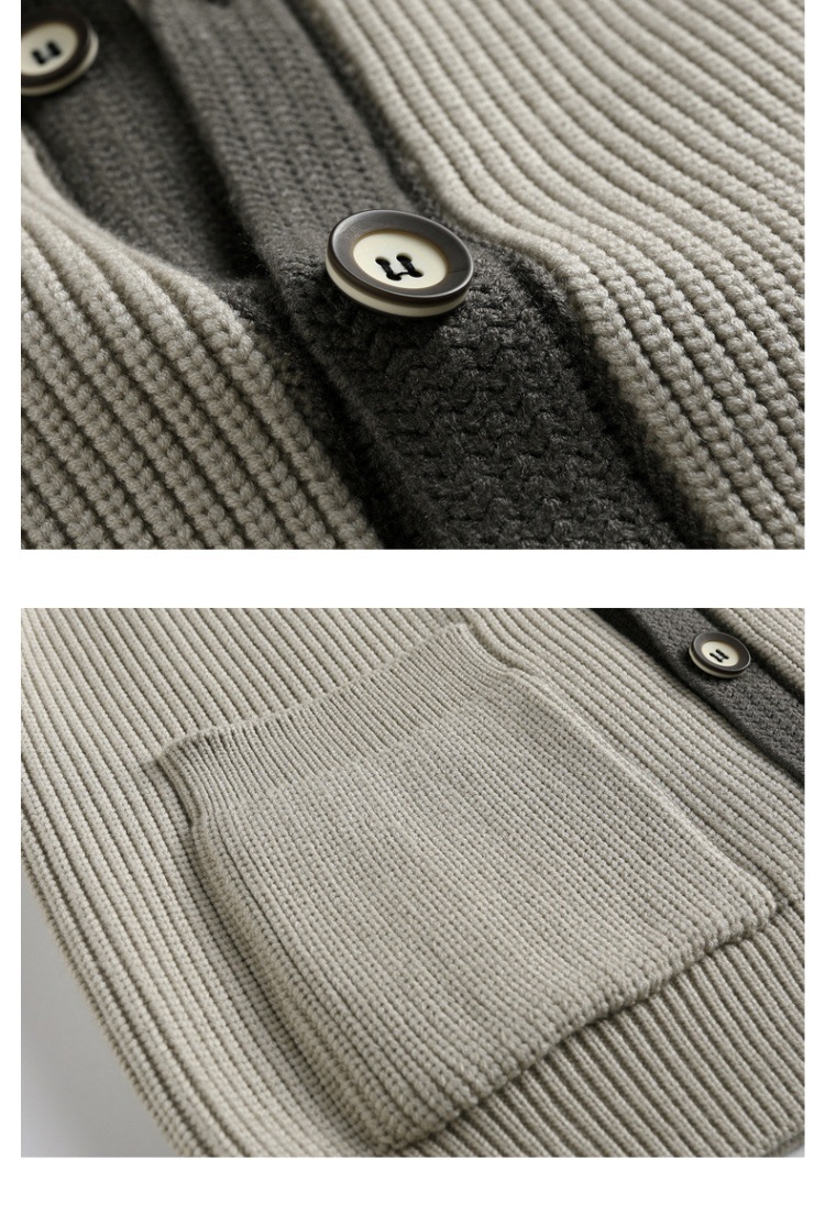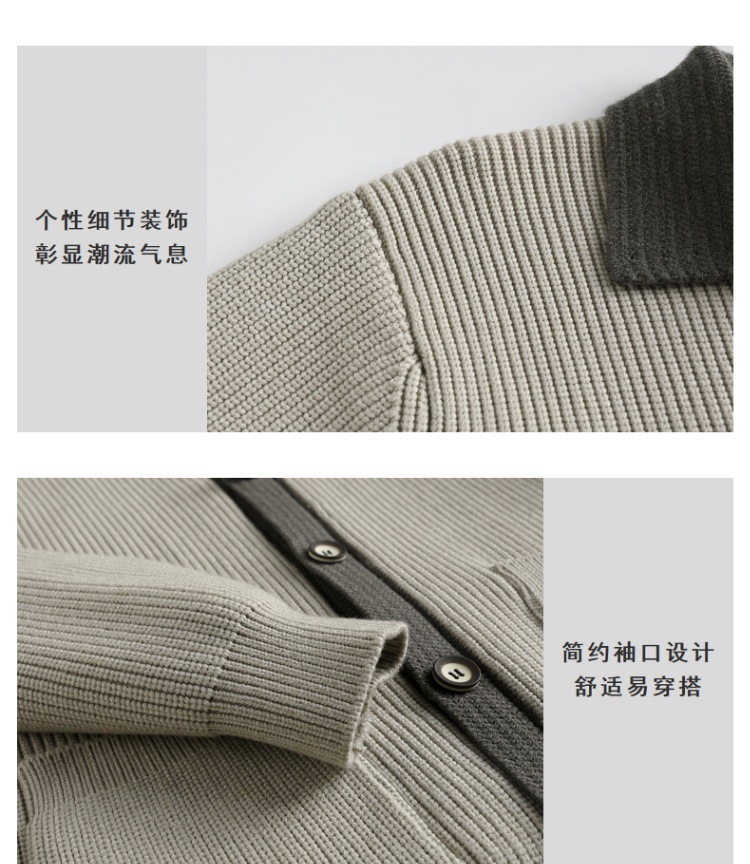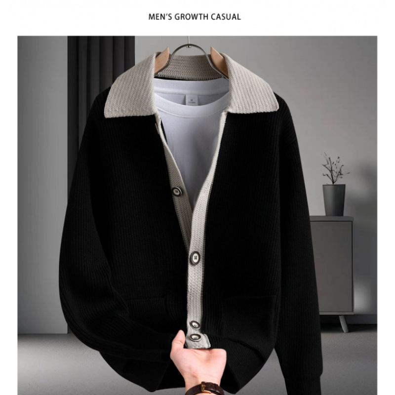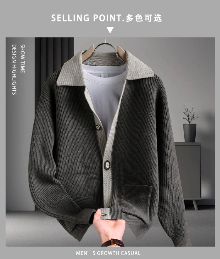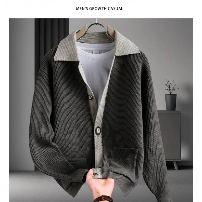 남성과 청소년을위한 가을 새 옷깃 대비 니트 카디건 재킷 캐주얼 올 매치 게으른 스타일 스웨터 재킷스토어 가기
