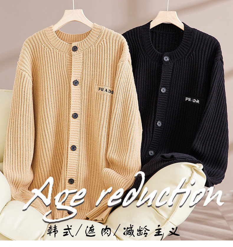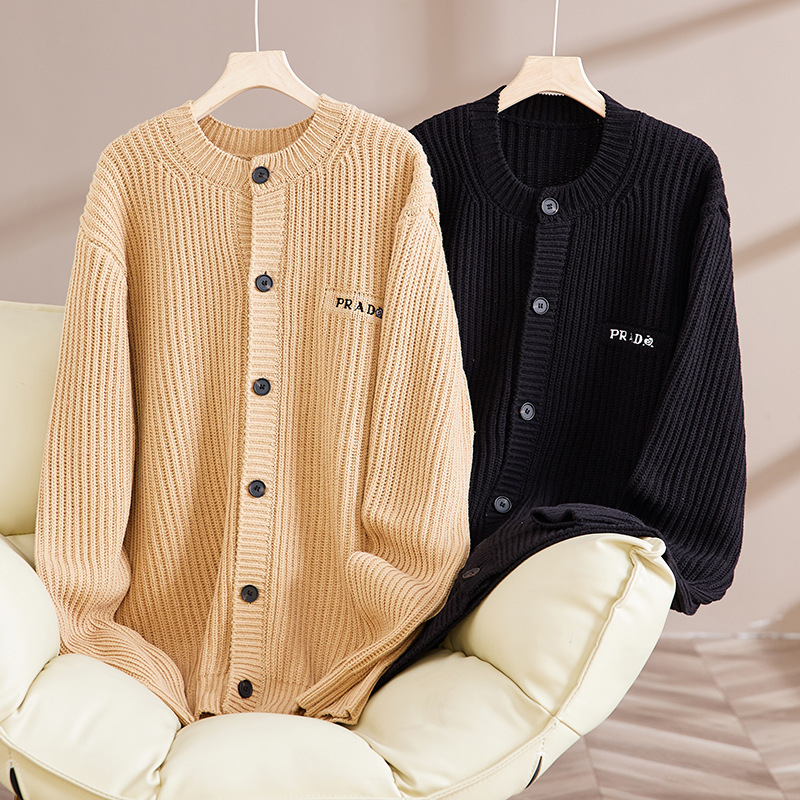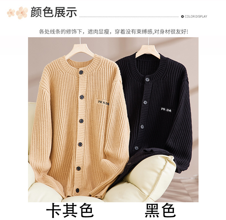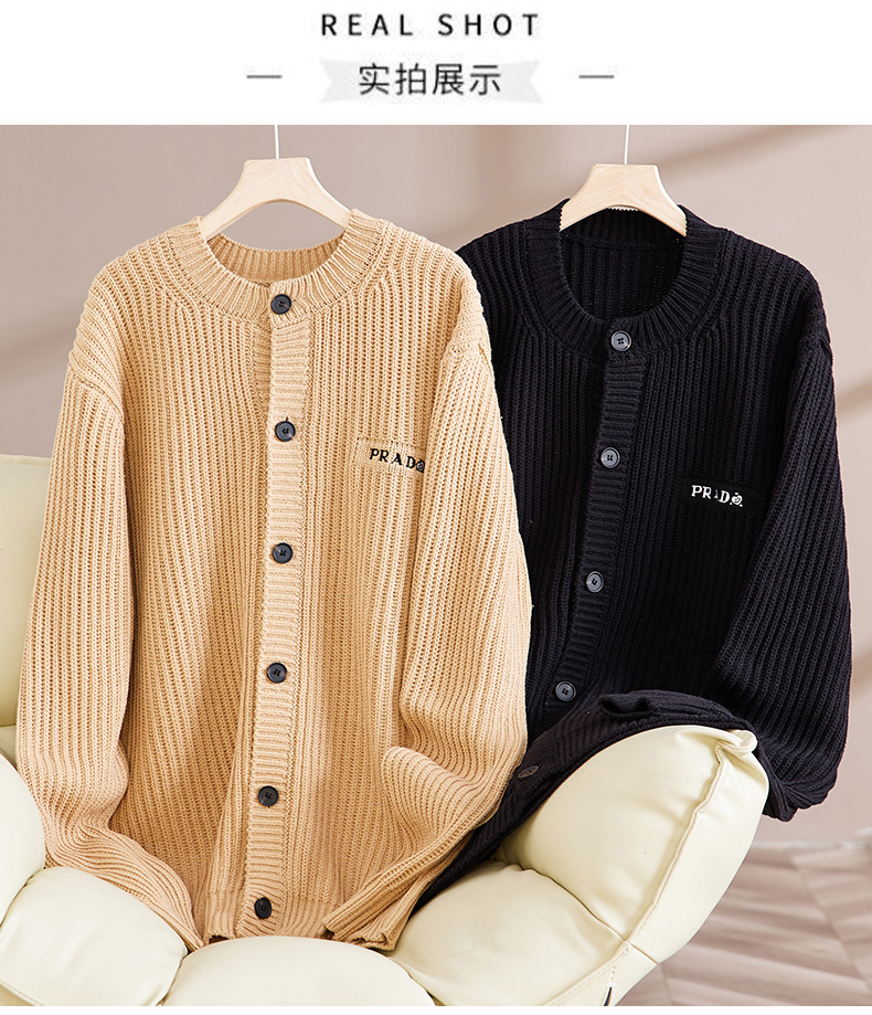 트렌디 한 브랜드 솔리드 컬러 니트 톱 남성과 여성의 가을 아메리칸 레트로 자수 카디건 스웨터 게으른 스타일 커플의 캐주얼 아우터