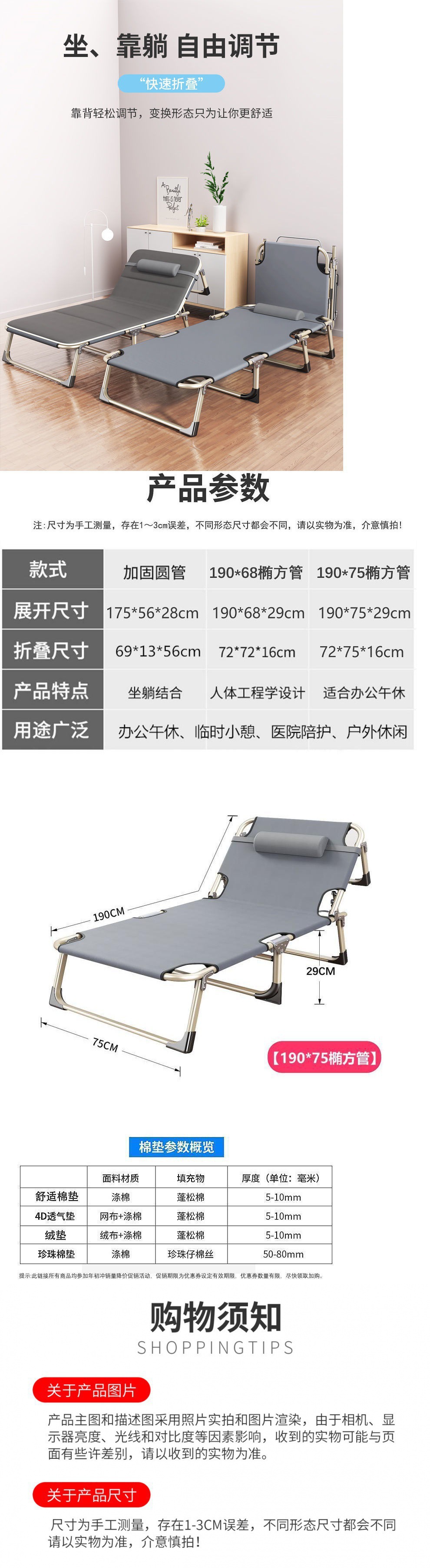 접이식 침대 싱글 침대 홈 성인 점심 식사 휴식 침대 낮잠 휴게실 접이식 사무실 간단한 침대 3 월 동반 침대스토어 가기
