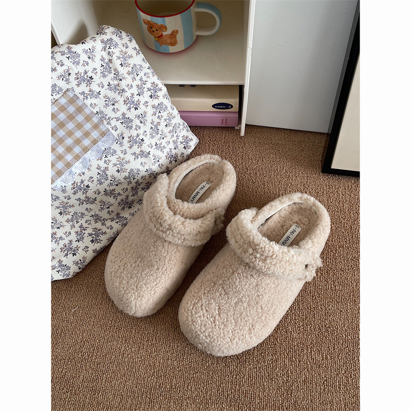 빈티지 기모 Baotou 두꺼운 마오 마오 슬리퍼 여성 아우터웨어 2024 새로운 가을과 겨울 슬립 온 게으른 버켄 스톡 슬리퍼