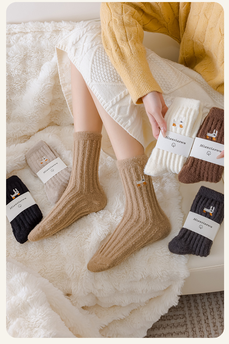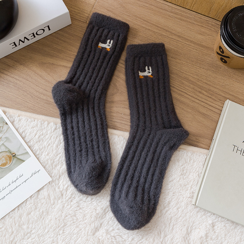 양말 여성의 가을과 겨울 두꺼운 따뜻한 여성 양말 만화 강아지 자수 양말 홈 바닥 양말 수면 양말