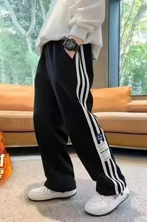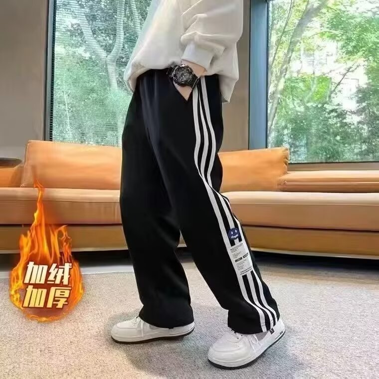 아동복 소년 바지 봄과 가을 스트레이트 와이드 다리 바지 새로운 스타일 중대형 어린이 가을 스포츠 가을 기모 캐주얼 바지스토어 가기