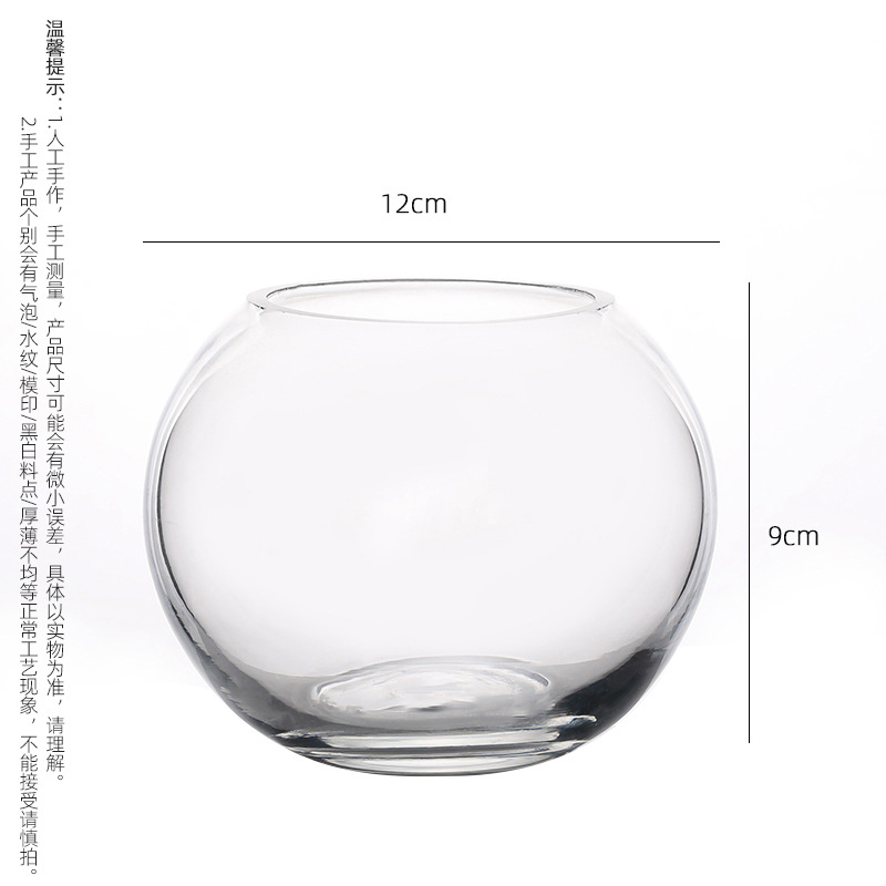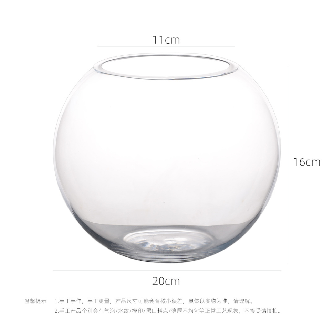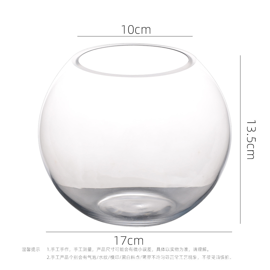 수제 두꺼운 투명 유리 공 꽃병, 창의적인 가벼운 고급 꽃꽂이, 물 꽃 화분, 거실 탁상 장식품