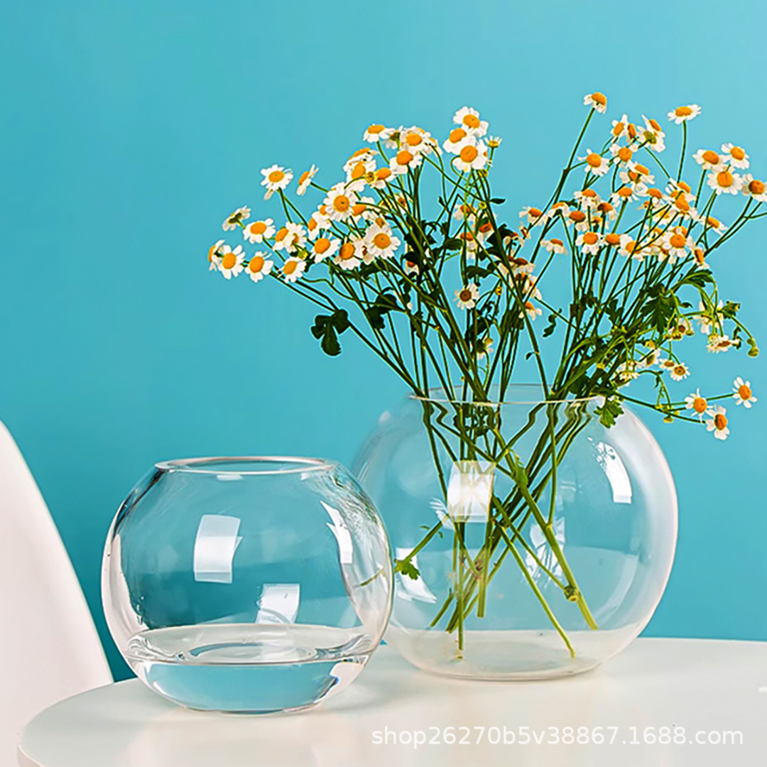 수제 두꺼운 투명 유리 공 꽃병, 창의적인 가벼운 고급 꽃꽂이, 물 꽃 화분, 거실 탁상 장식품스토어 가기