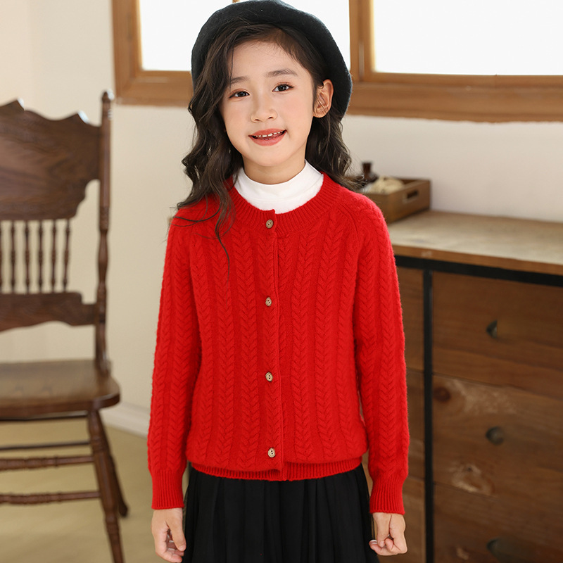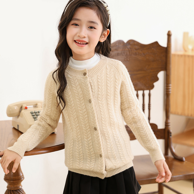 24秋冬新款100纯羊毛七针加厚开衫圆领长袖男女宝宝麻花毛衣外套