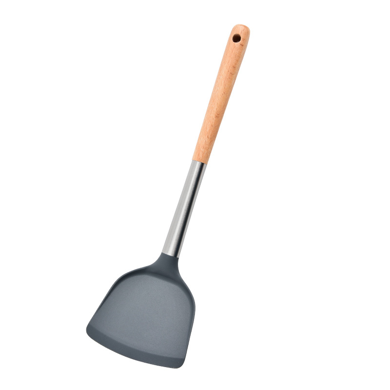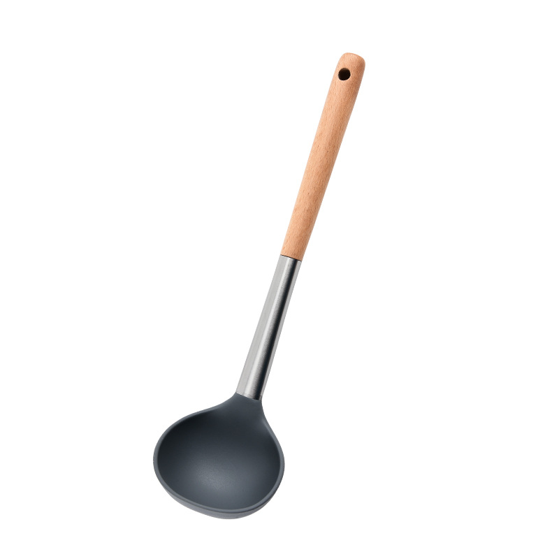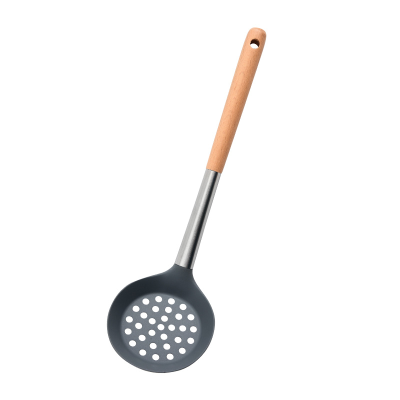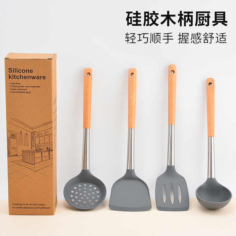 재고 나무 손잡이 실리콘 주방용품 4 종 세트 낚시 헤지 스필 더 수프 스푼 스테이크 튀긴 삽 가정용 요리 주방 도구