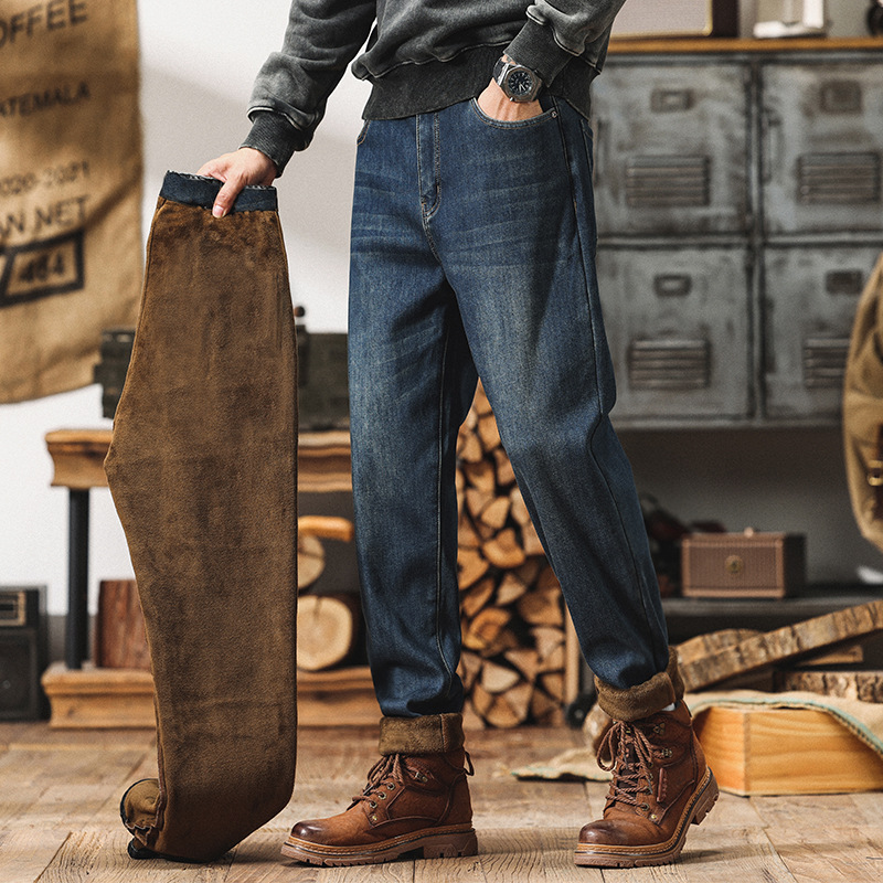 2024 겨울 높은 스트레치 기모 청바지 남성용 슬림 핏 스키니 피트 플러스 대형 뚱뚱한 남자 스트레치 트렌디 한 바지스토어 가기