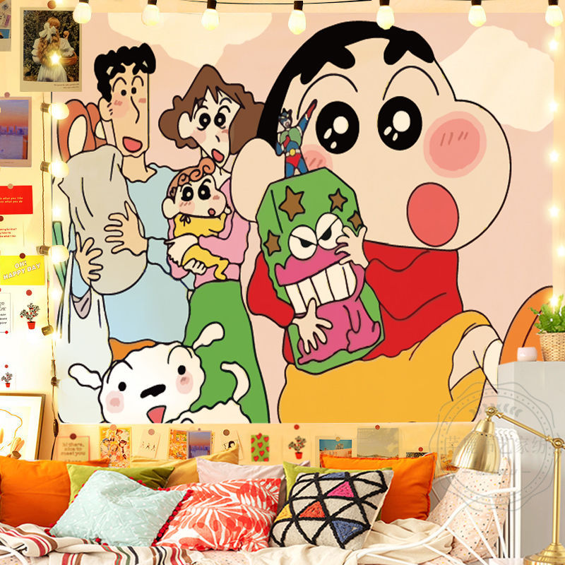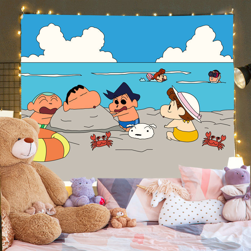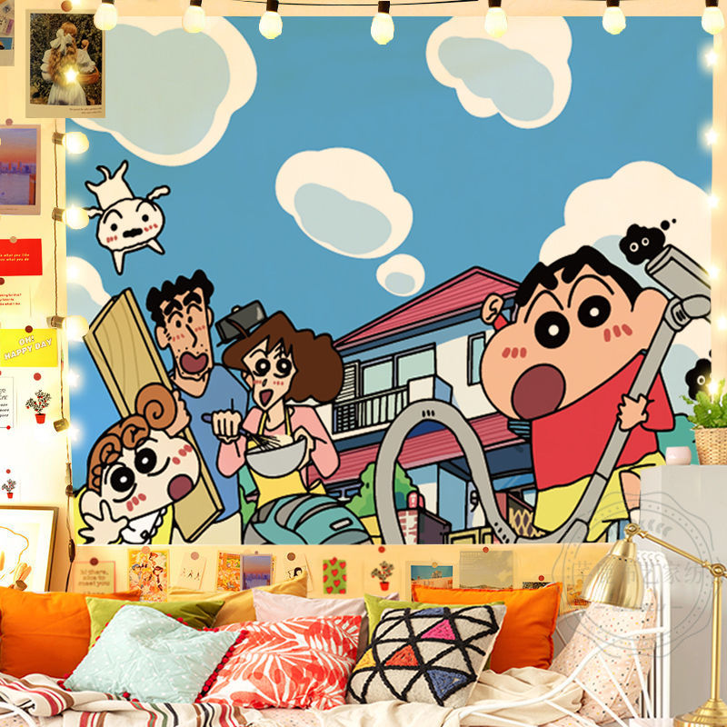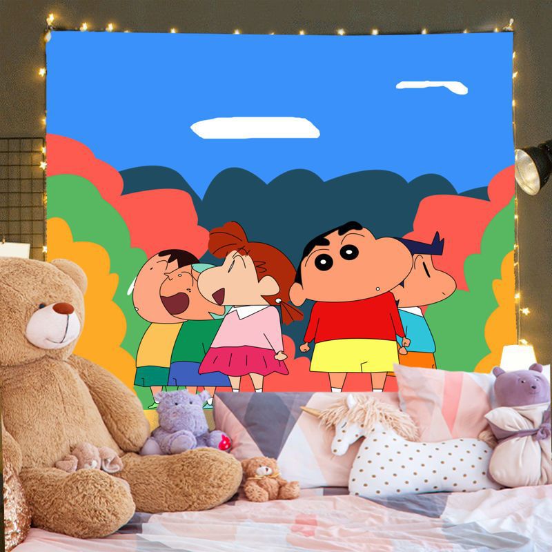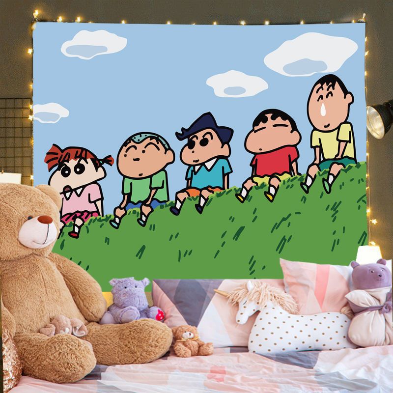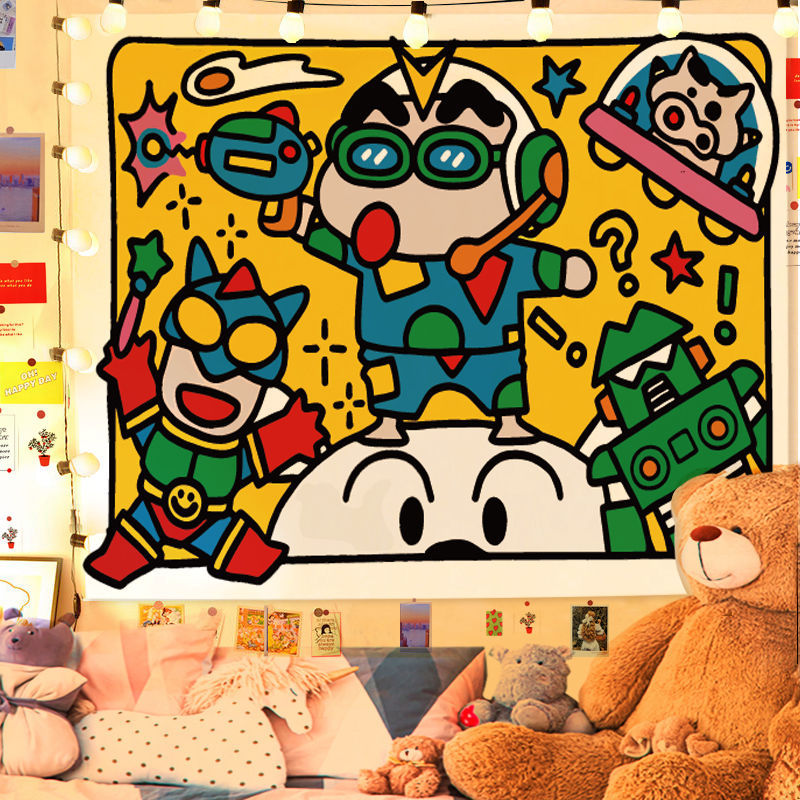 만화 크레용 작은 새 배경 천 걸이 천 큰 사진 귀여운 만화 벽 천 침실 기숙사 재건 천스토어 가기