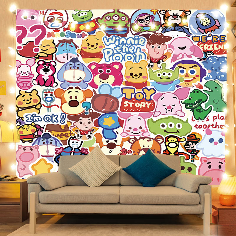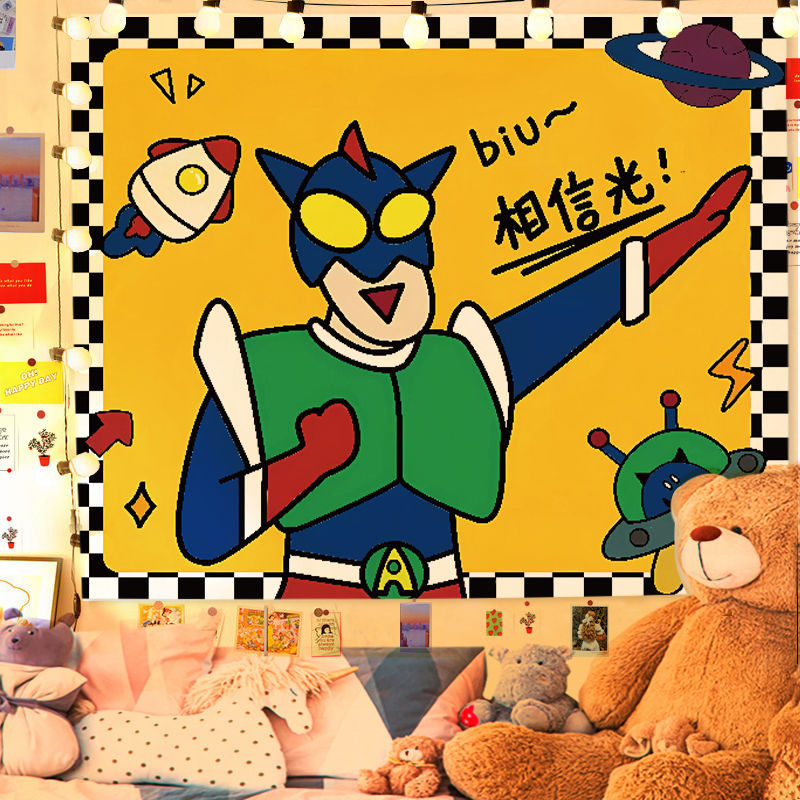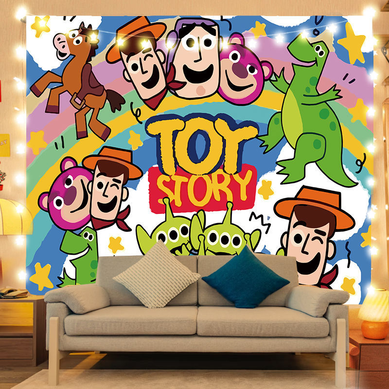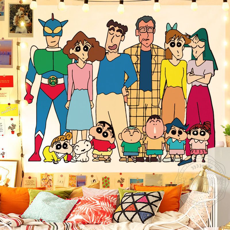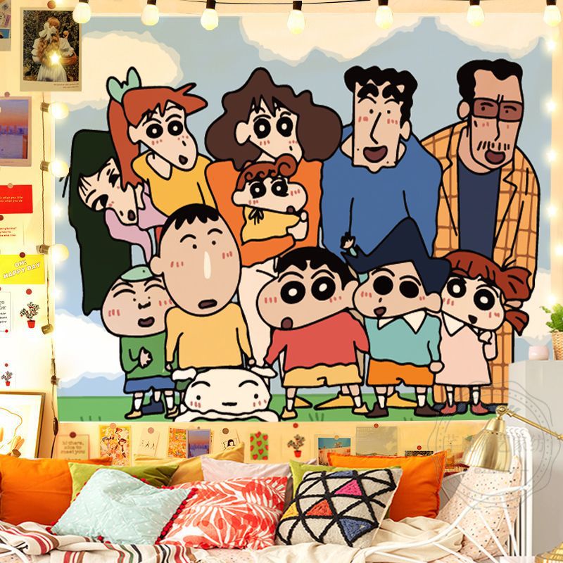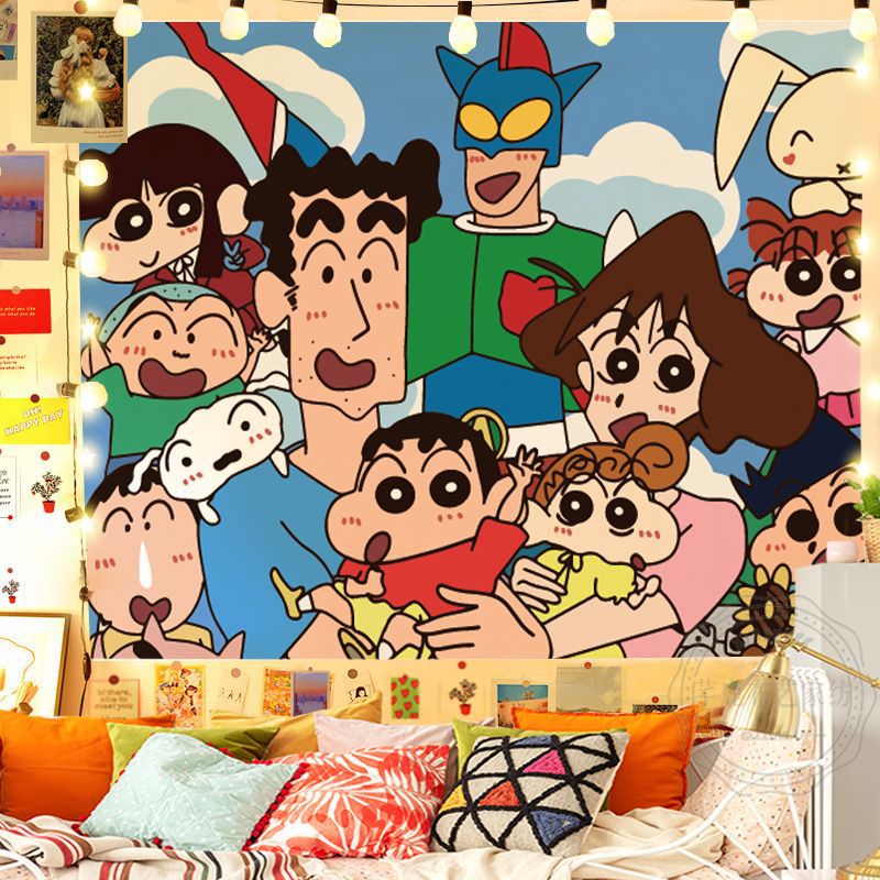 만화 크레용 작은 새 배경 천 걸이 천 큰 사진 귀여운 만화 벽 천 침실 기숙사 재건 천스토어 가기
