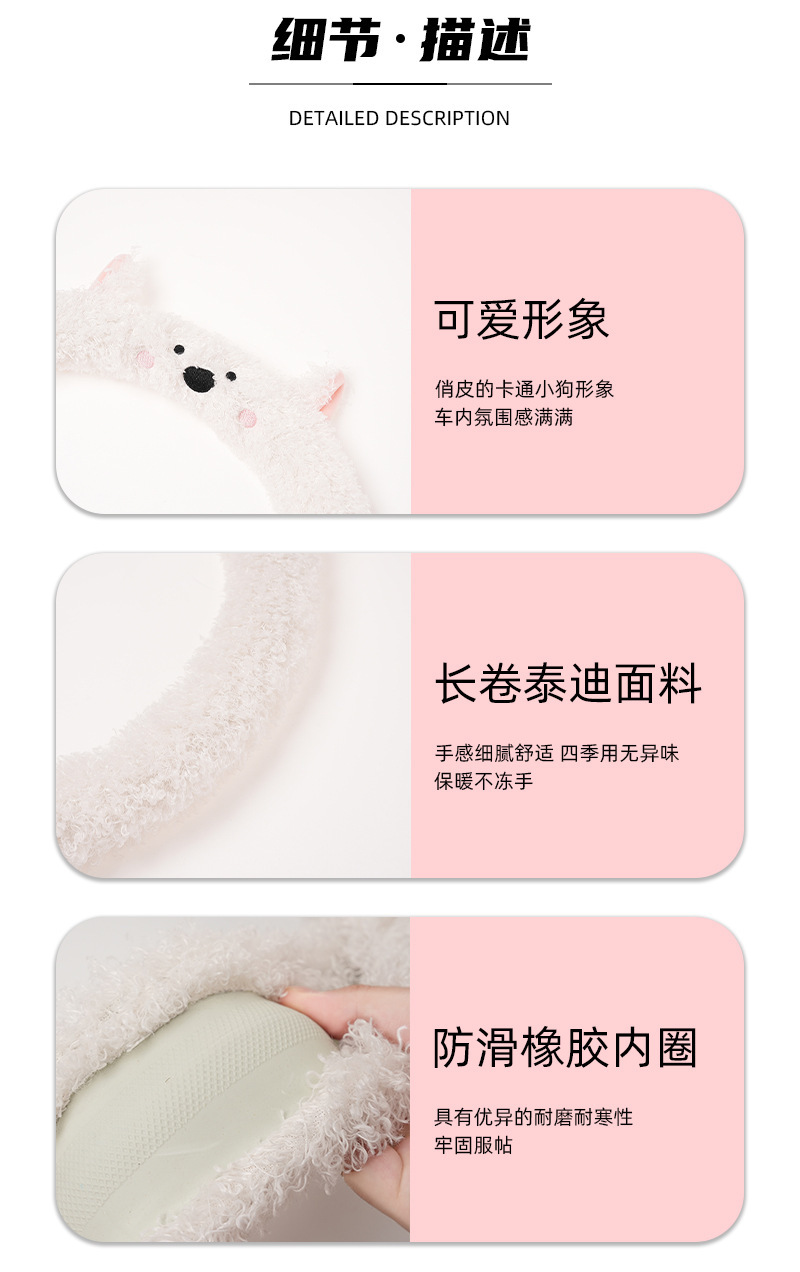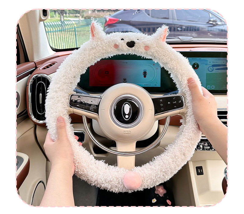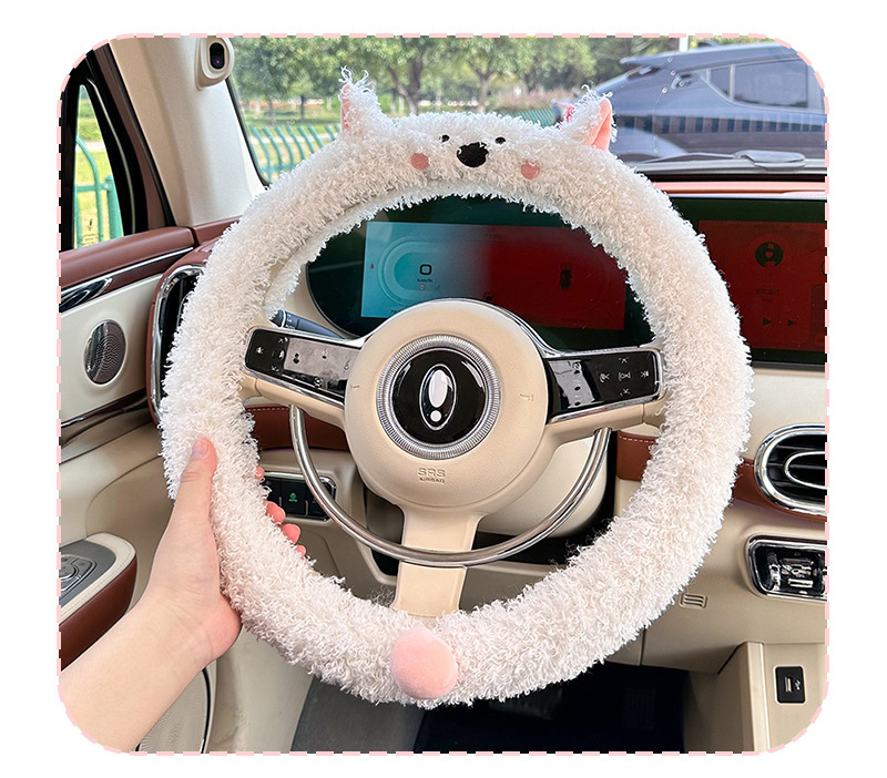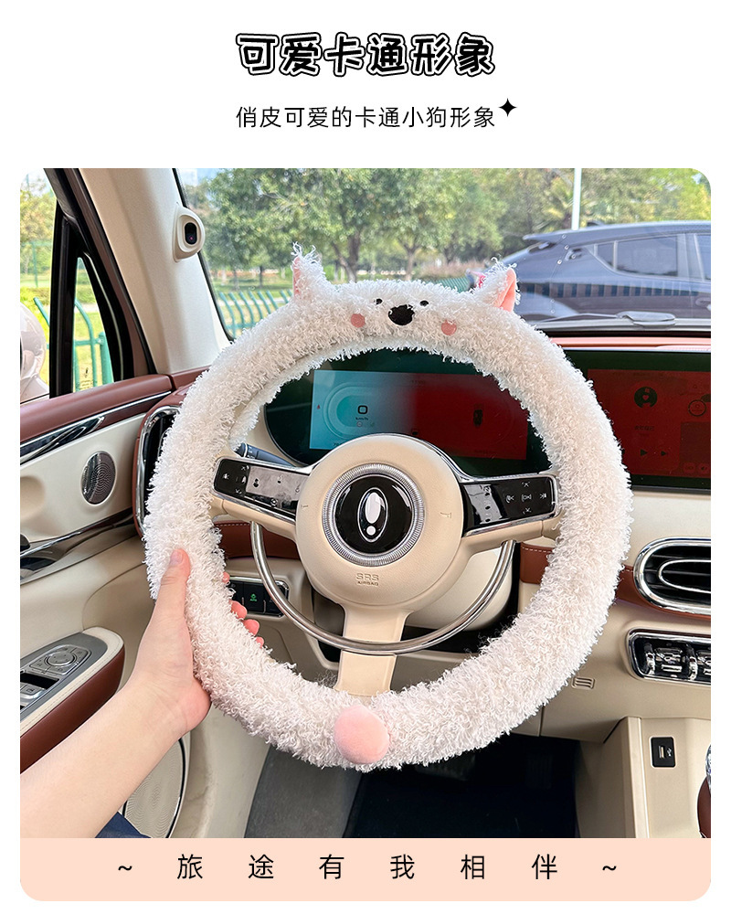자동차 겨울 봉제 따뜻하고 편안한 미끄럼 방지 자동차 핸들 커버 만화 자동차 귀여운 강아지 자동차 스티어링 휠 커버