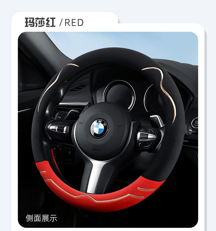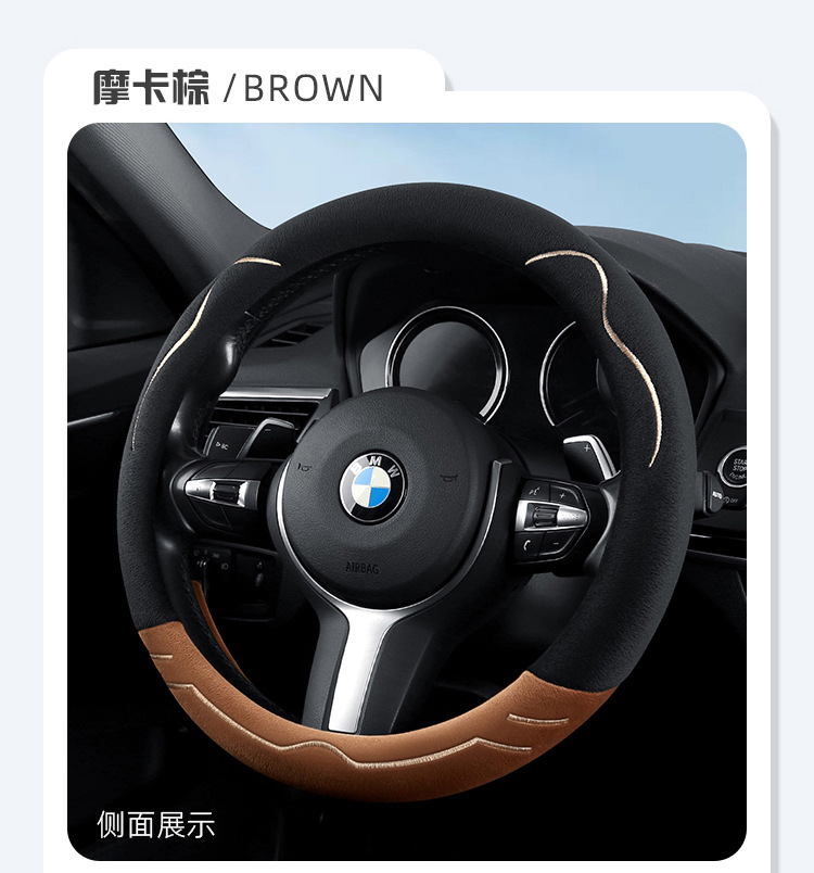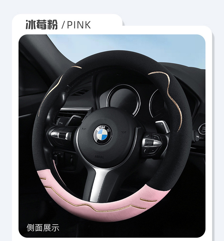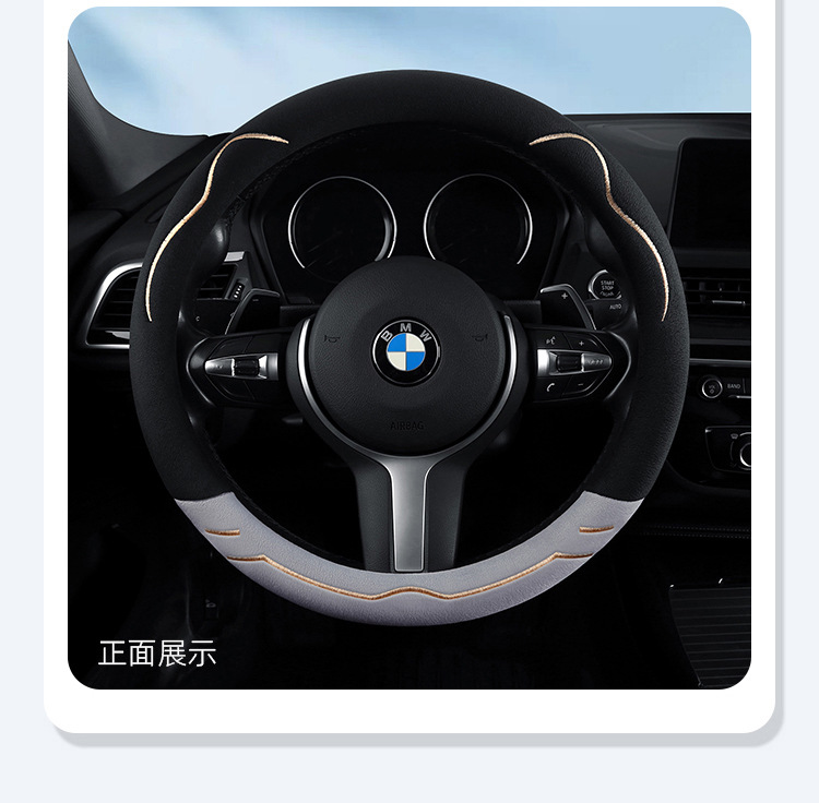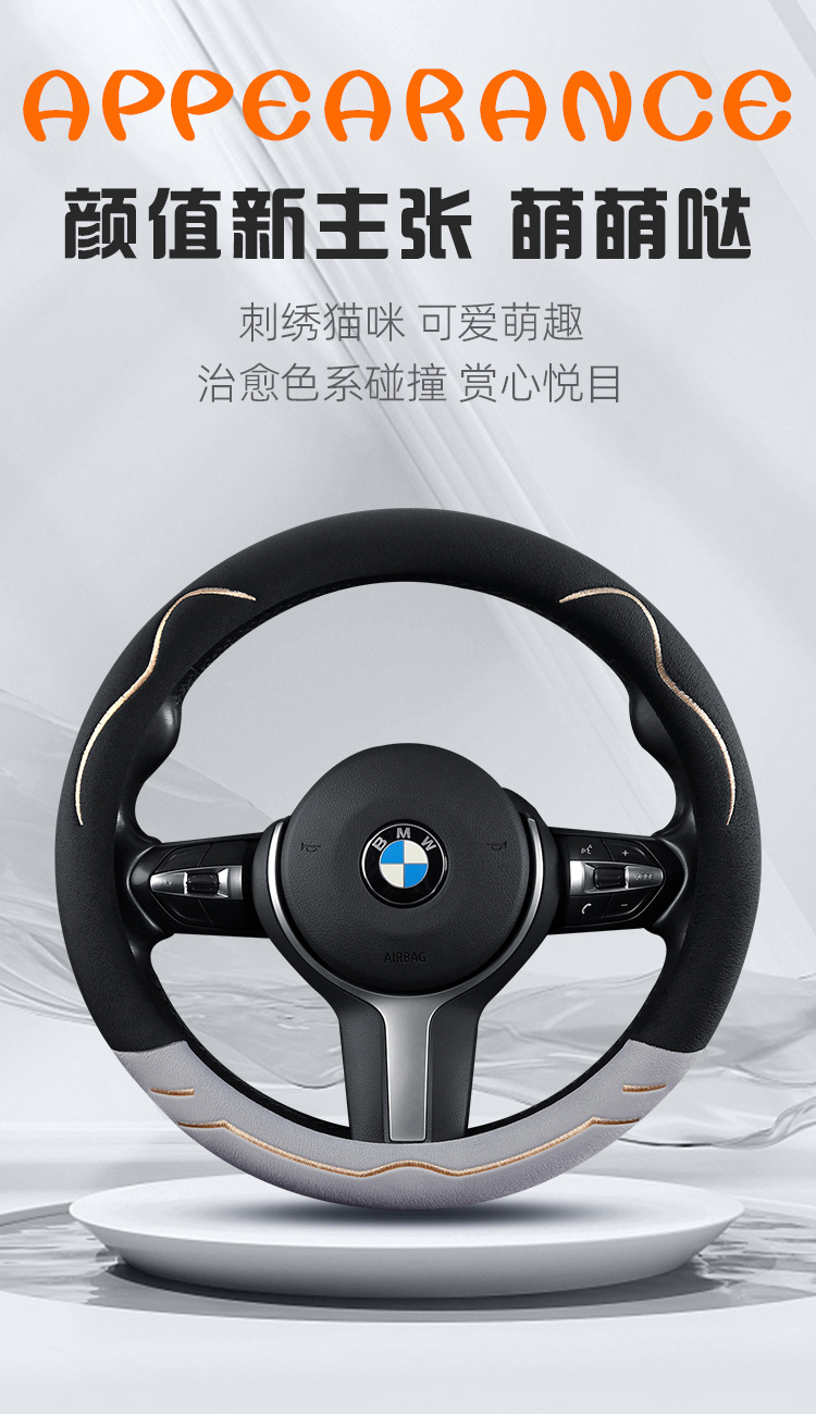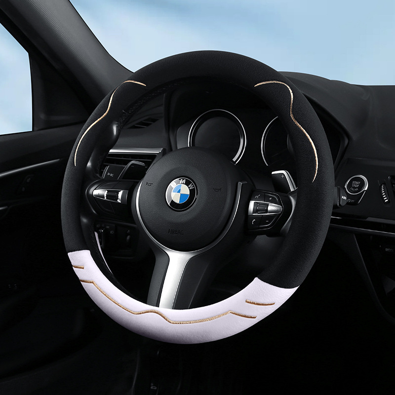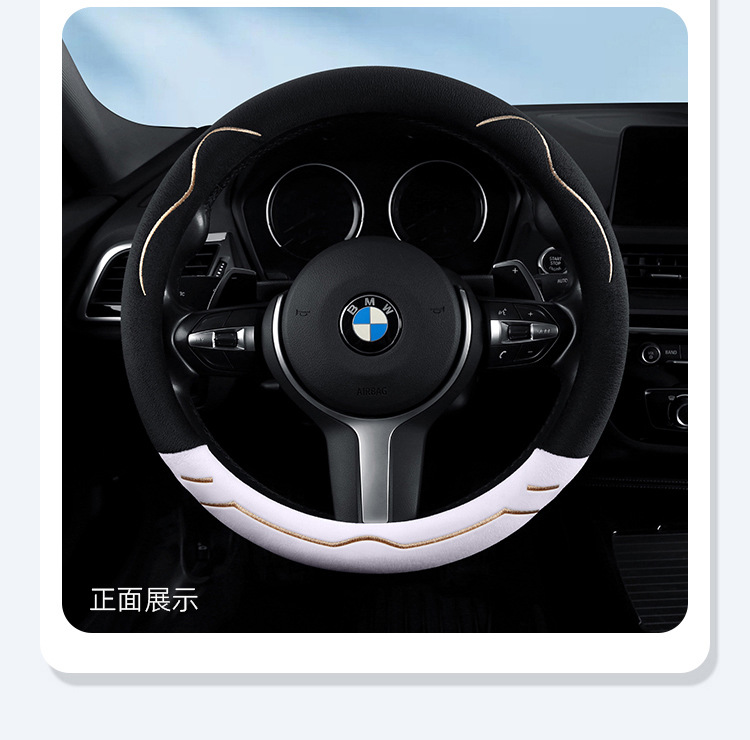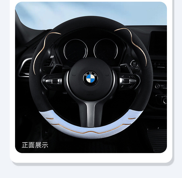 스티어링 휠 커버 부드러운 따뜻한 피부 친화적 인 자동차 핸들 커버 사계절 유니버설 미끄럼 방지 핸들 커버 만화 고양이 이어 핸들 커버