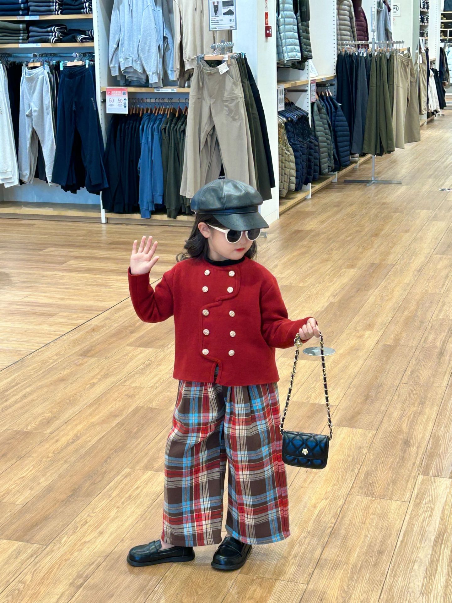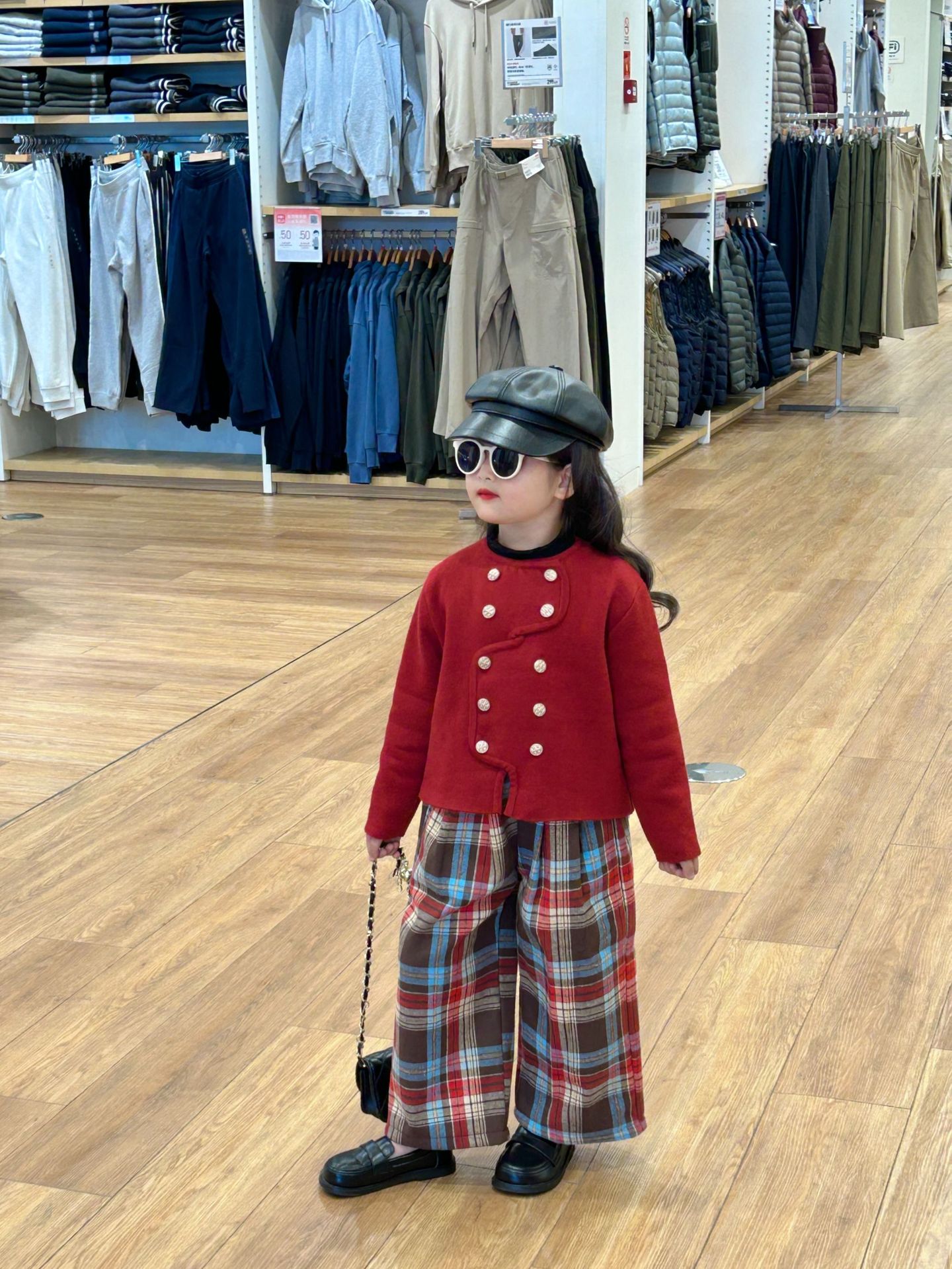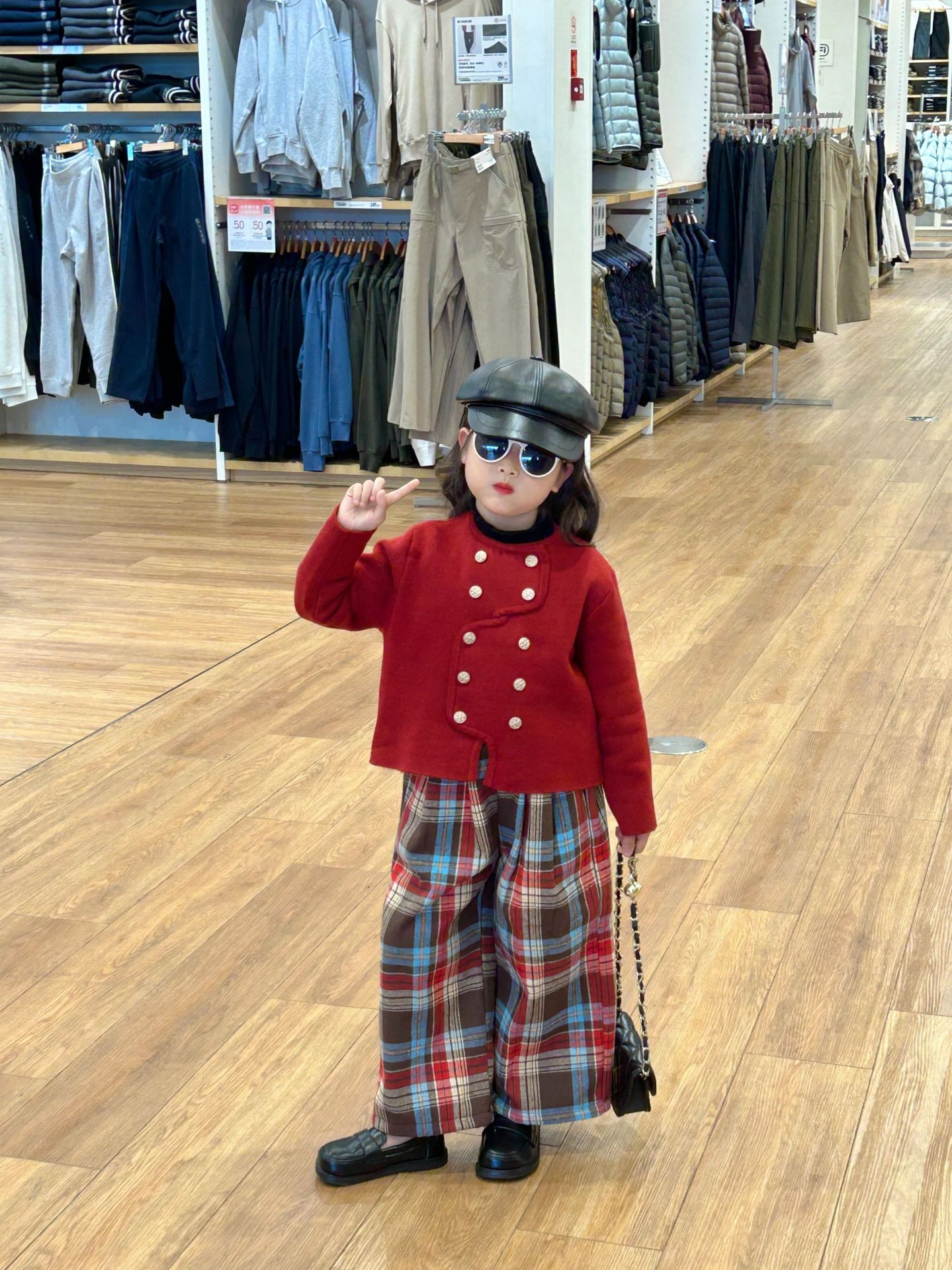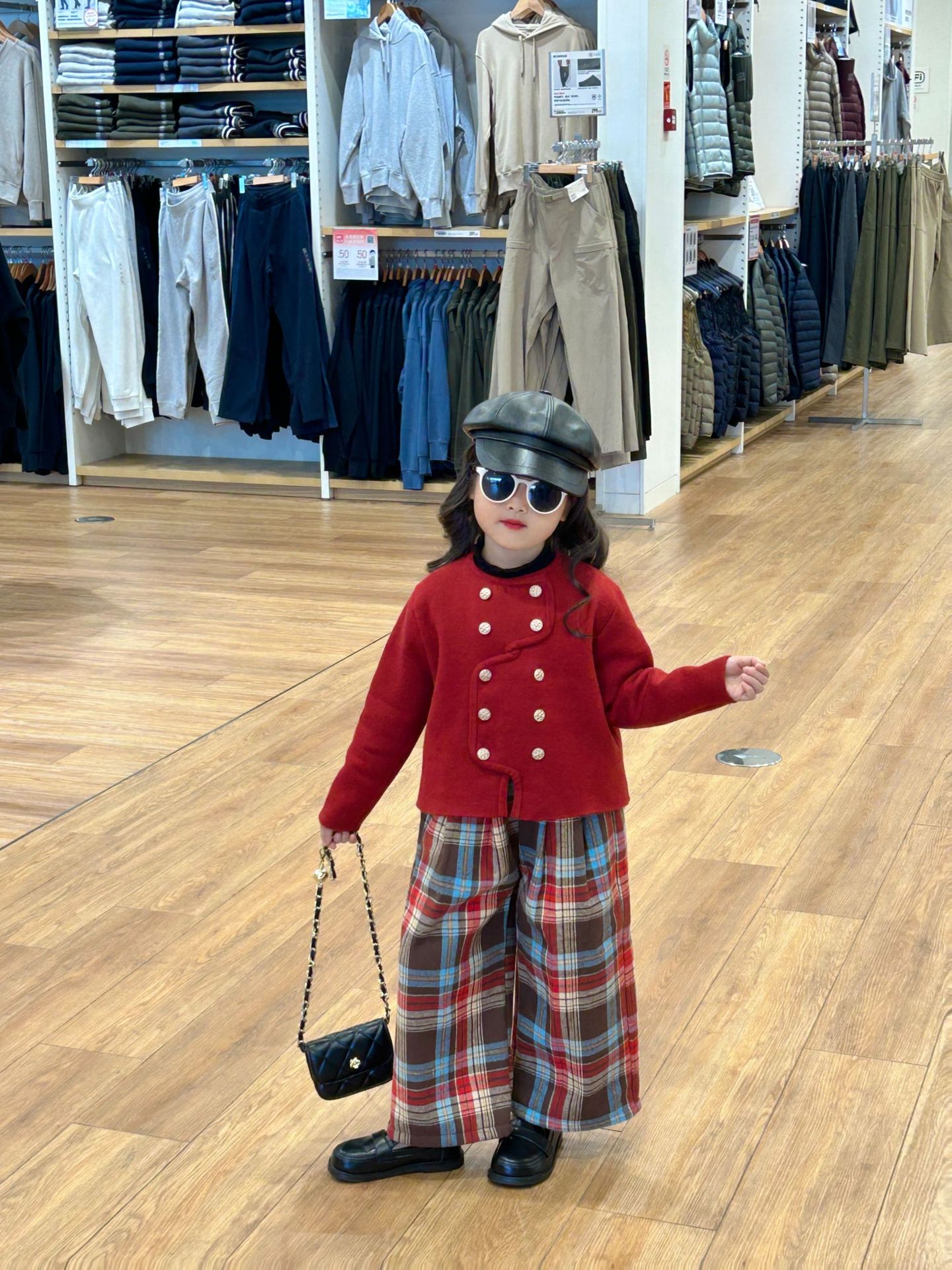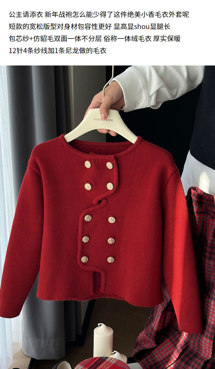 반품 불가, 정가 82원 세트, 여아용 우아한 겨울 신년복, 더블 버튼 레드 니트 가디건스토어 가기