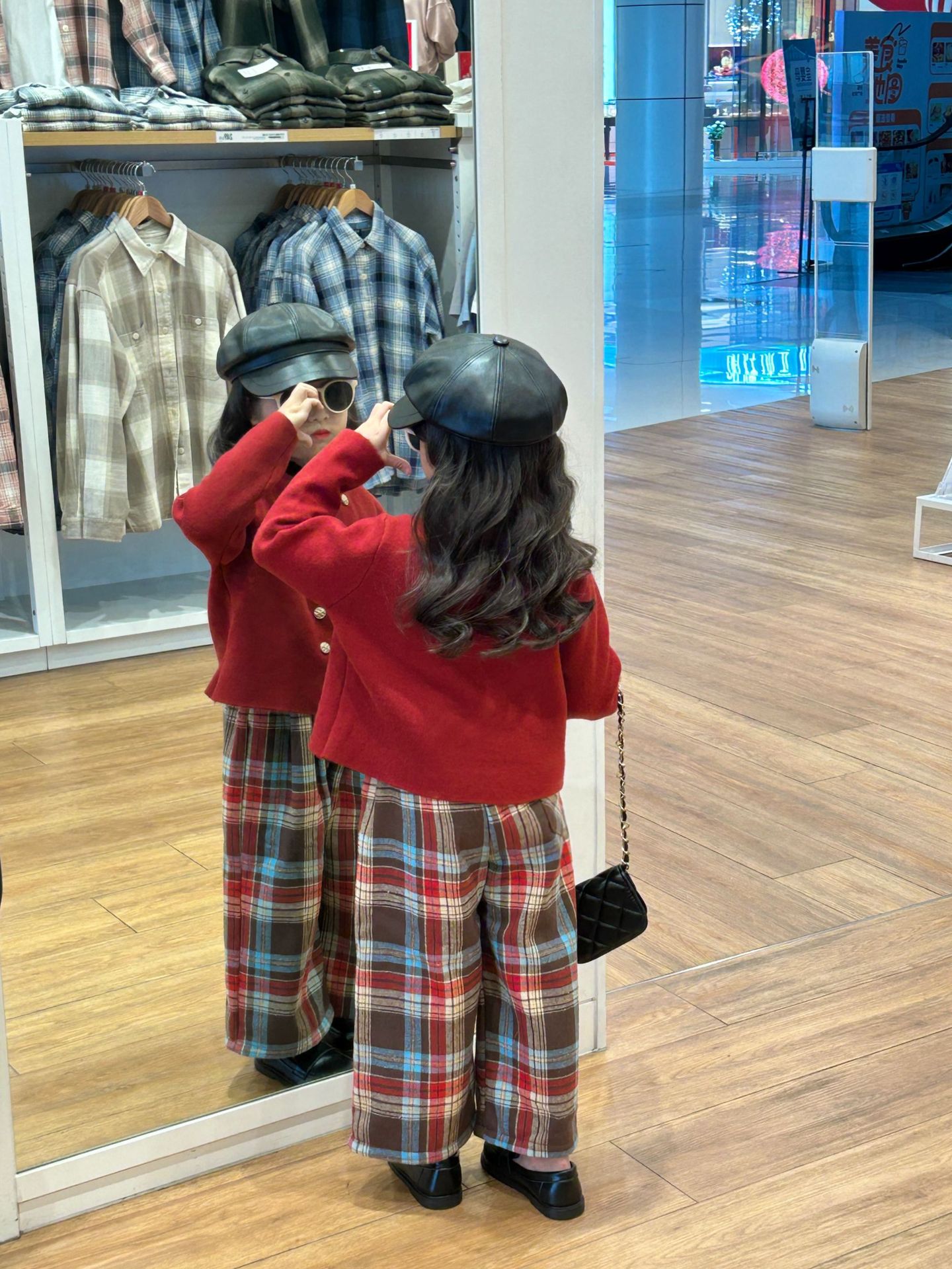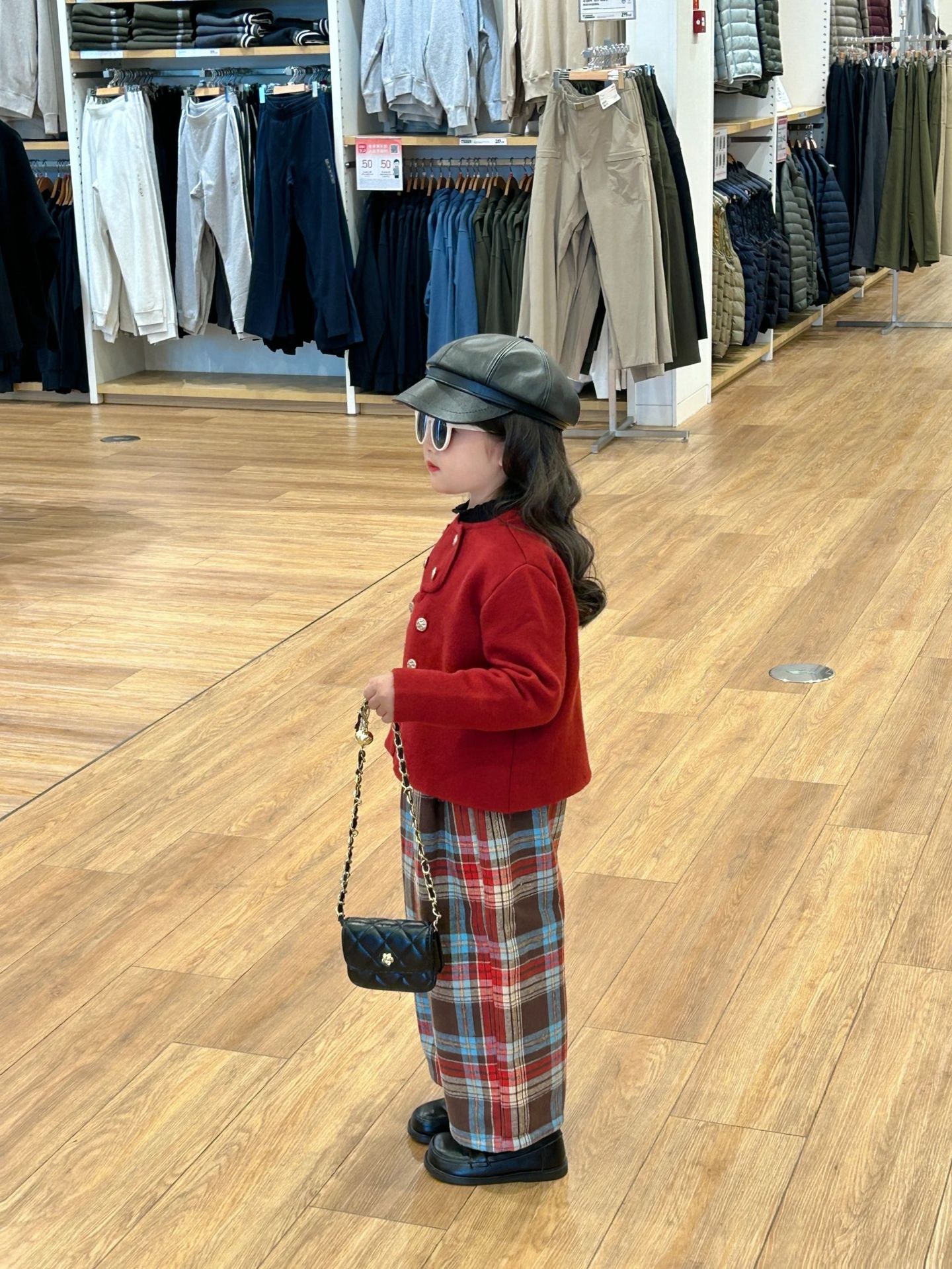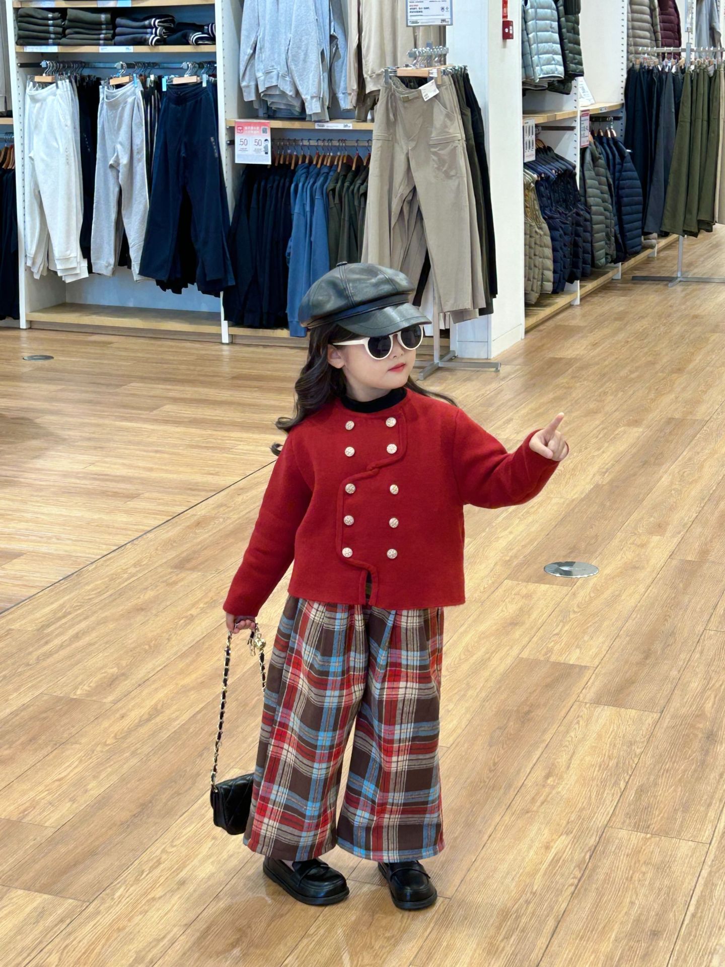 • 양털 체크 무늬 바지