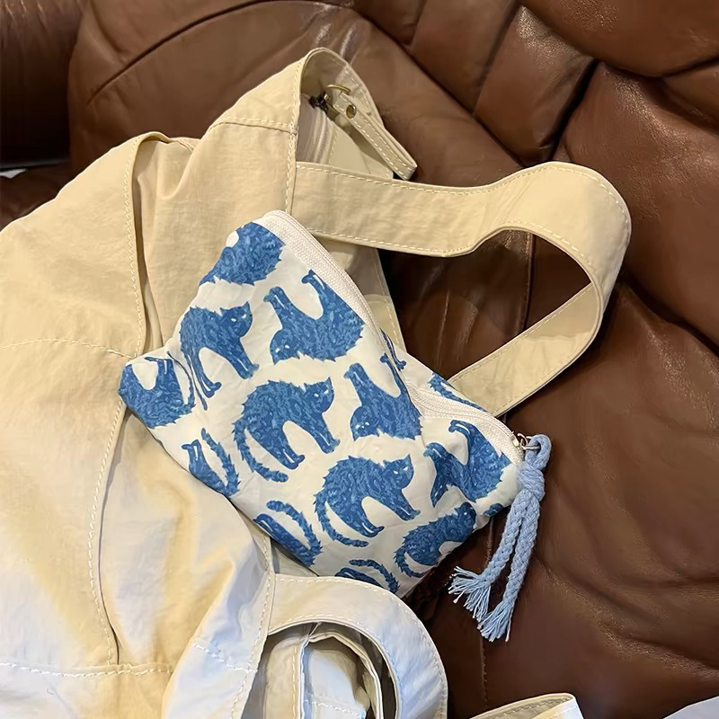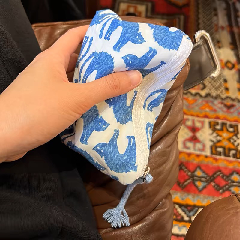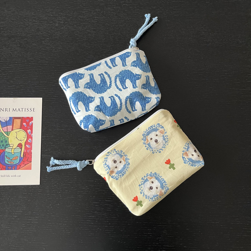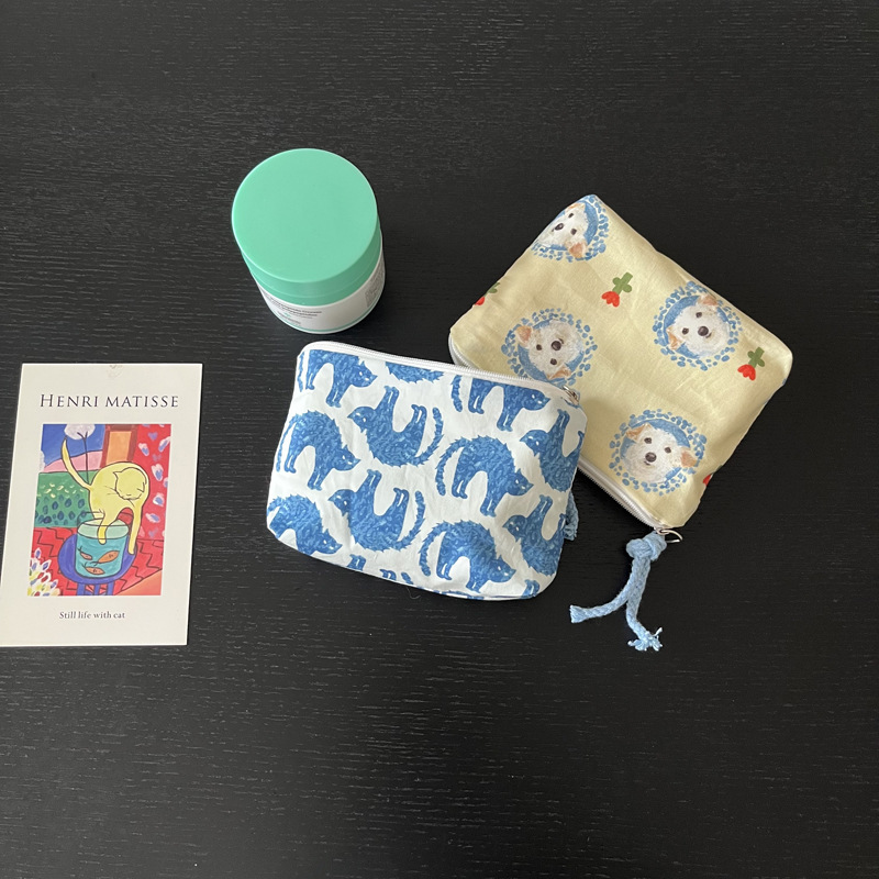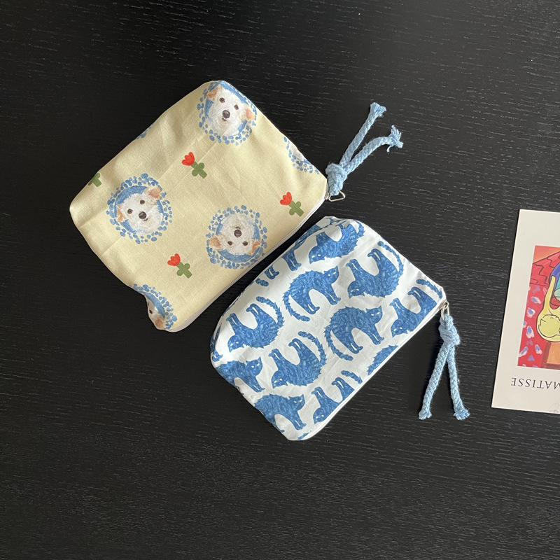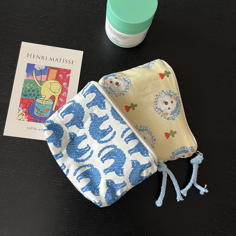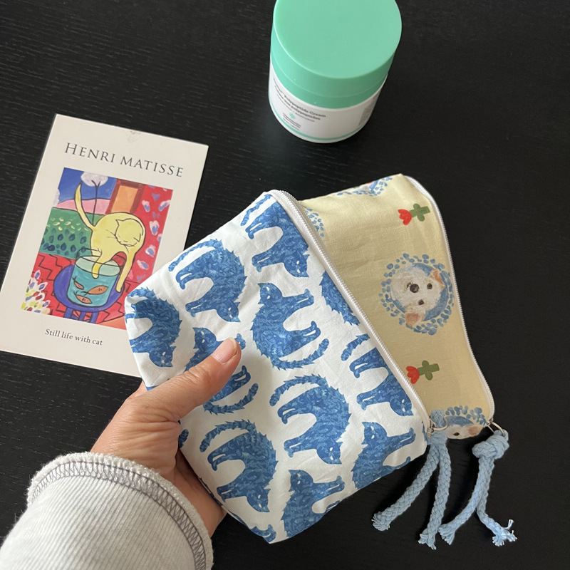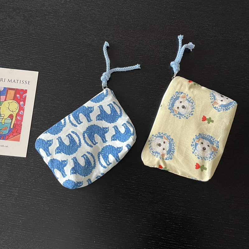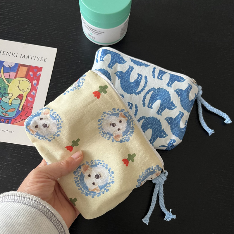 面料:表层是60支的细支纯棉布,一个可爱的炸毛小蓝猫,一个萌萌的趣味小狗图案,都是非常可爱百搭的配色