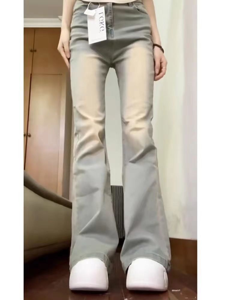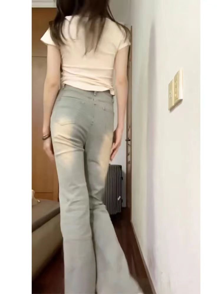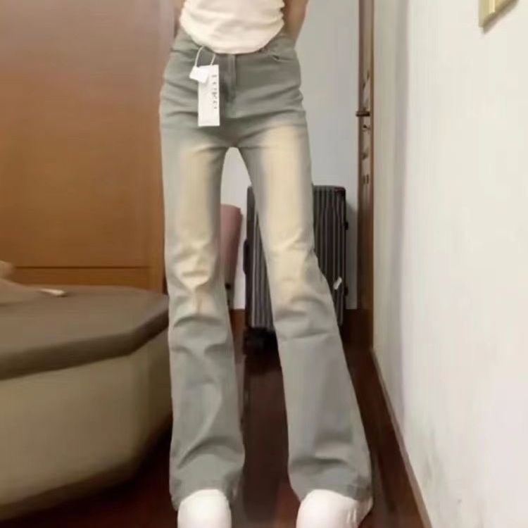 봄, 가을 여성을 위한 작은 올드 옐로우 머드 컬러 마이크로 플레어 청바지 새로운 하이 웨이스트 슬리밍 말굽 긴 바지스토어 가기