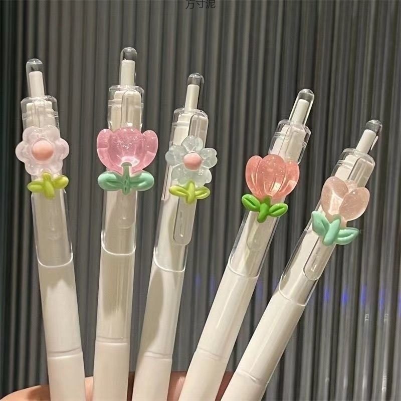 로맨틱 튤립 플라워 프레스 젤 펜 높은 색상 값 귀여운 바람 속도 드라이 ST 헤드 0.5 블랙 펜