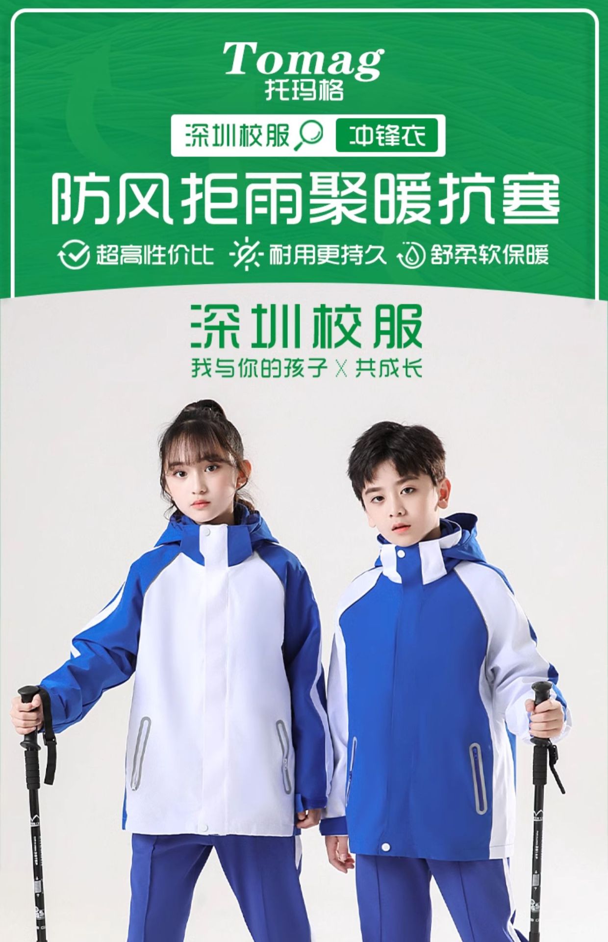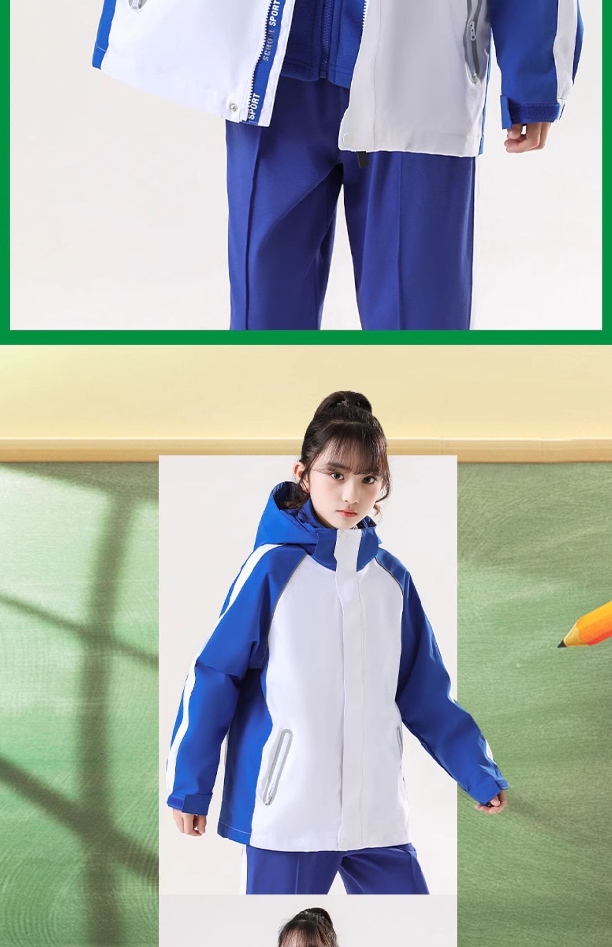 심천 초등학교 유니폼 러싱 옷 투피스 폴리어 양털 3 대 1 분리형 라이너 기모 방풍 및 방수스토어 가기