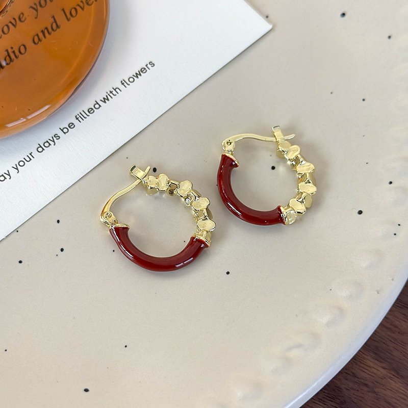 안콜라 레드 오일 드롭 스티칭 서클 버클 틈새 빈티지 홍콩 스타일 버건디 귀걸이 앙고라 레드 귀걸이스토어 가기