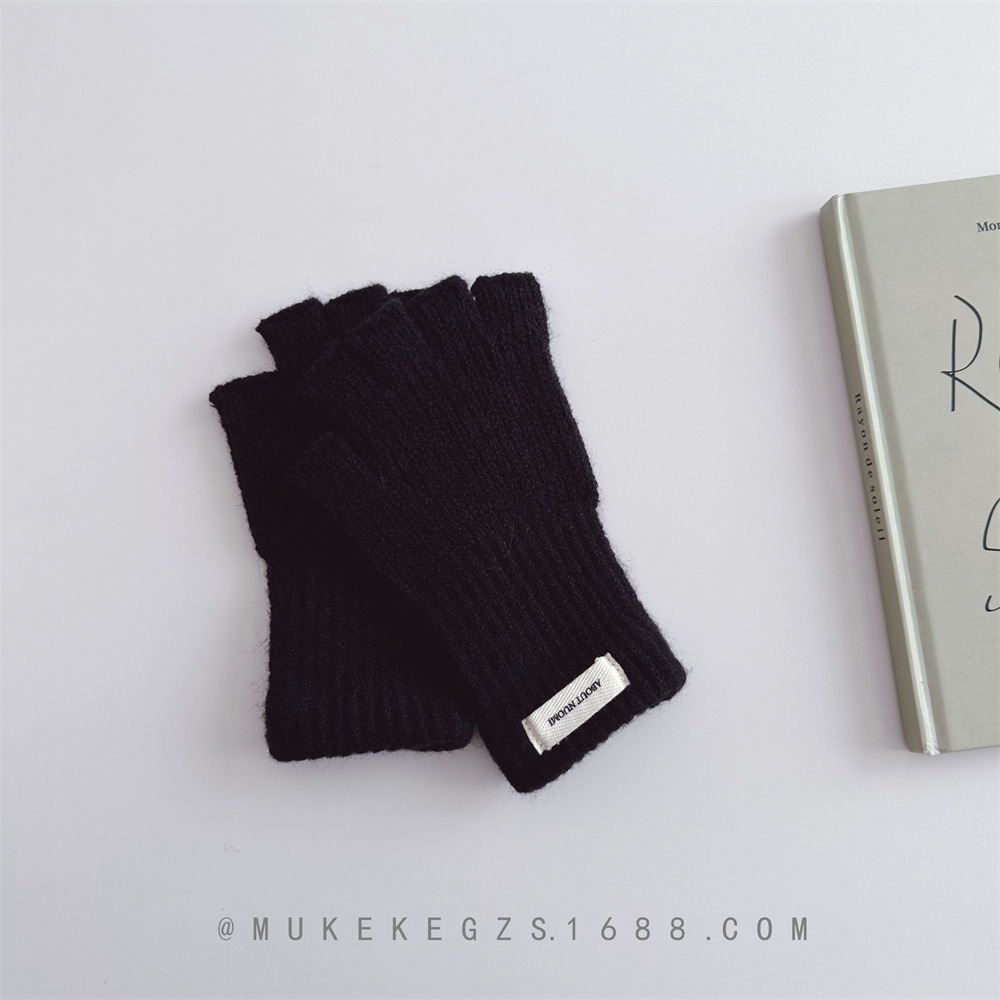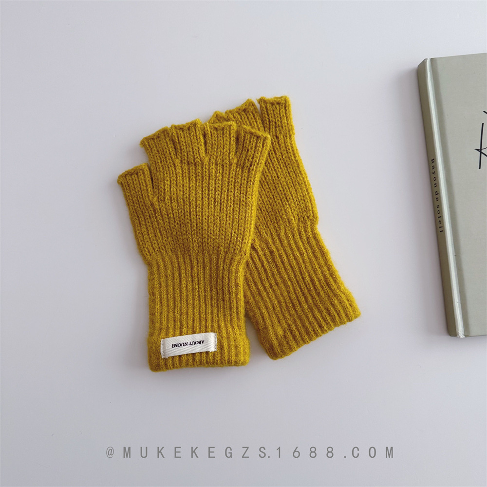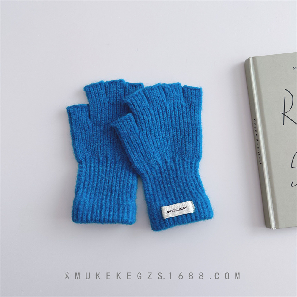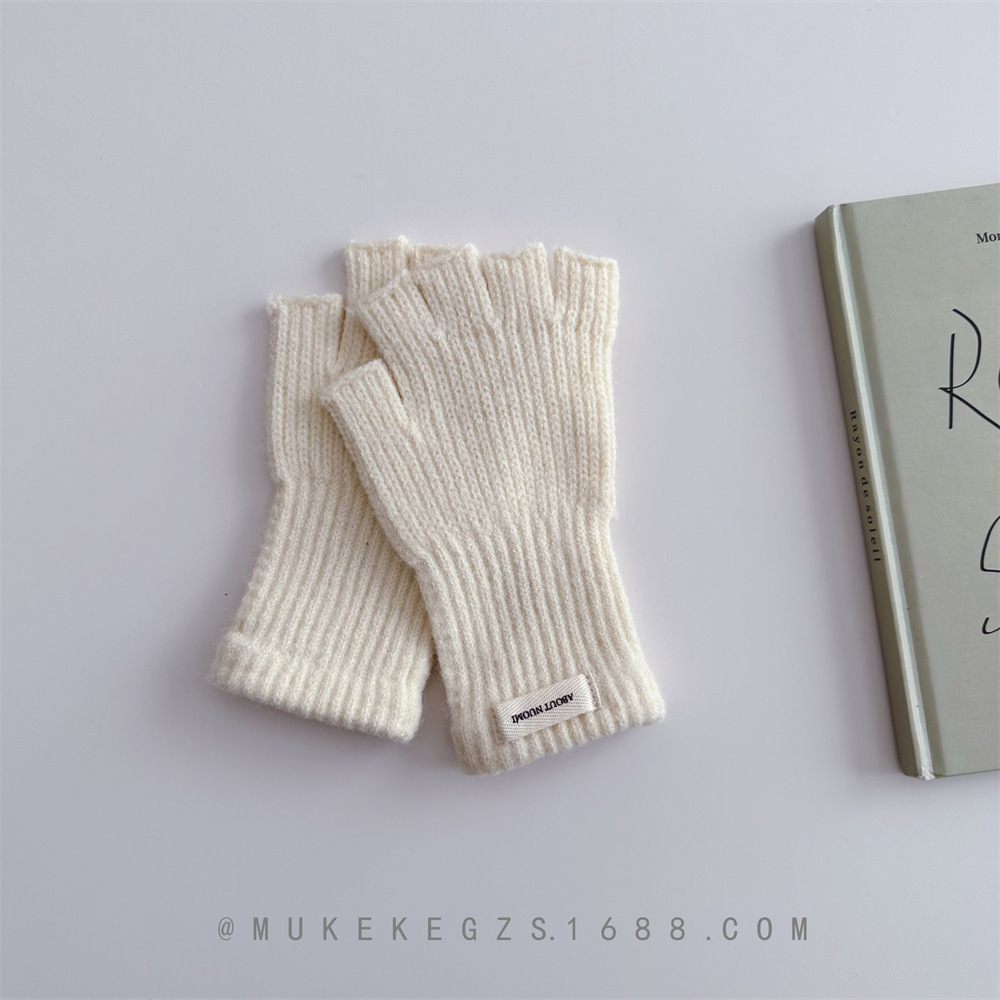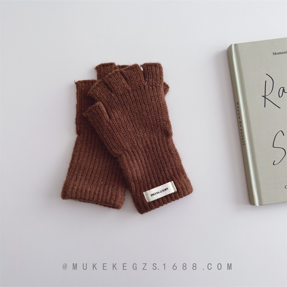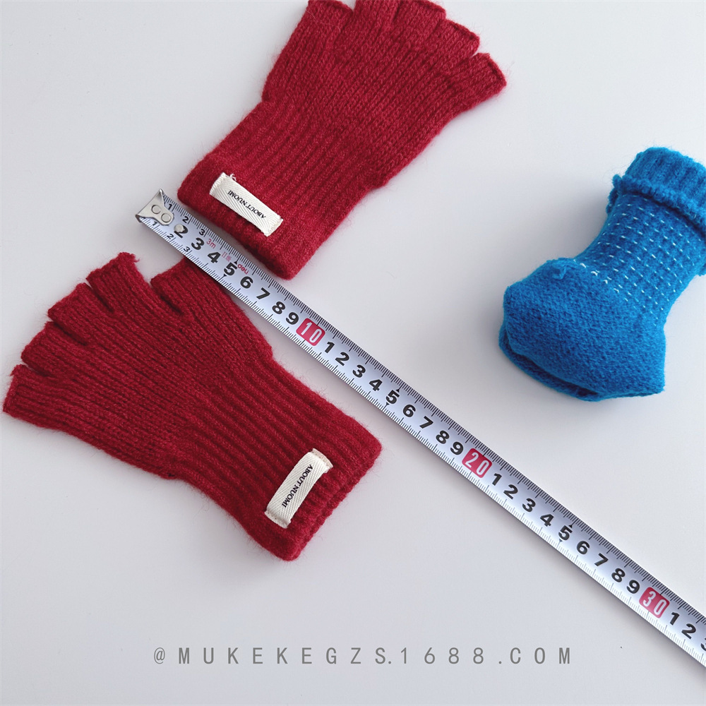 한국식 어린이 단색 니트 장갑 가을과 겨울 학생 전시 장갑 남학생과 여학생을위한 따뜻한 양모 반 손가락 장갑