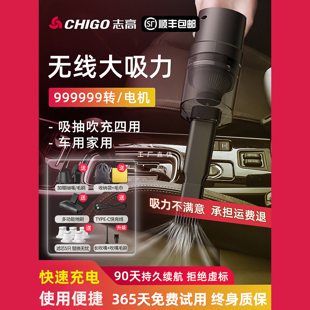 치고 자동차 진공 청소기 자동차 무선 충전 자동차 가정용 대형 흡입 전원 강력한 소형 소형 미니