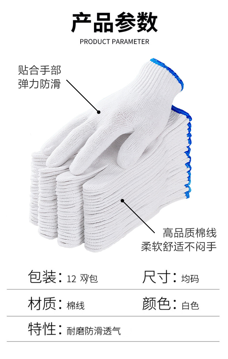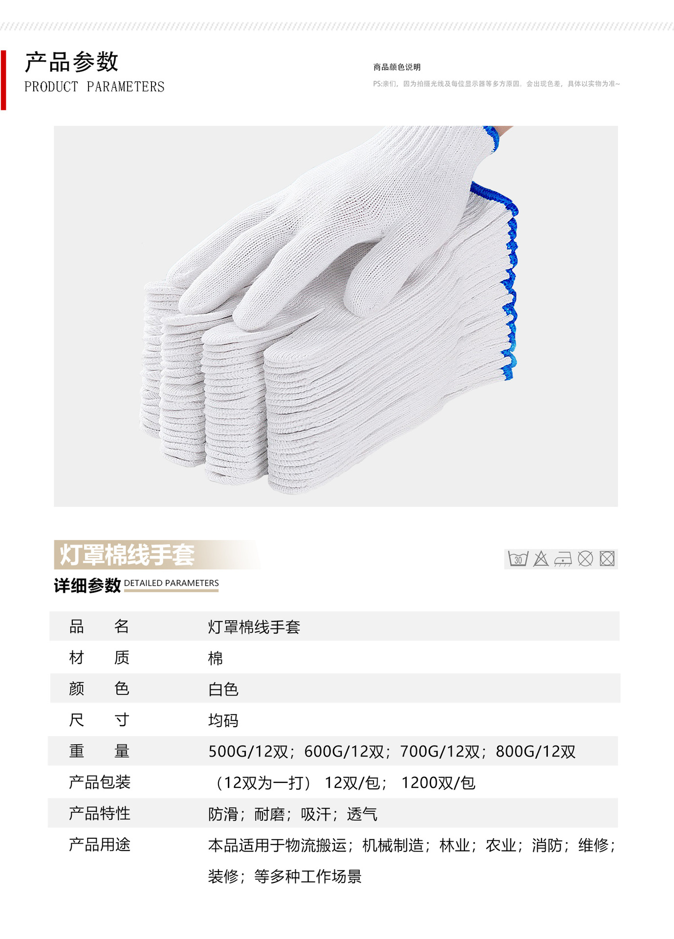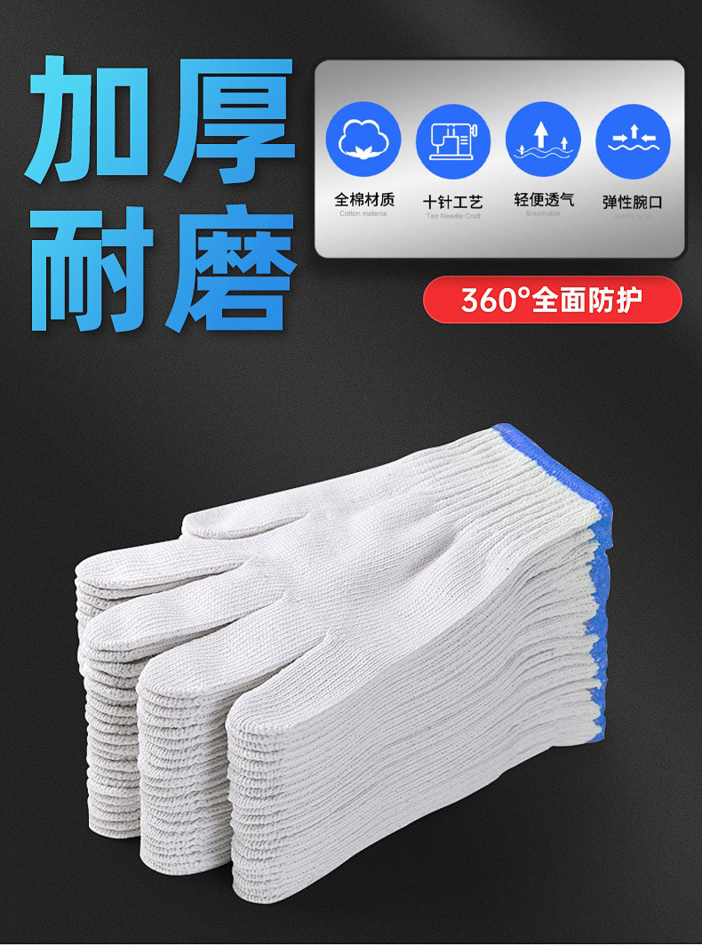 도매 전등갓면 장갑 노동 보호 용품 흰 장갑 현장 작업 내마모성 두꺼운 원사 장갑