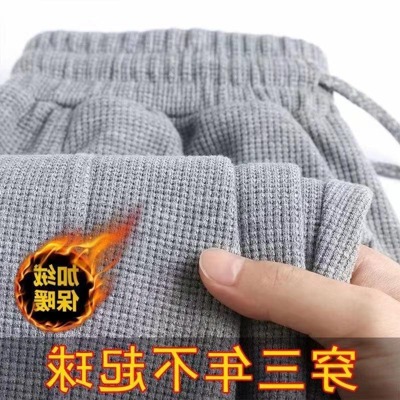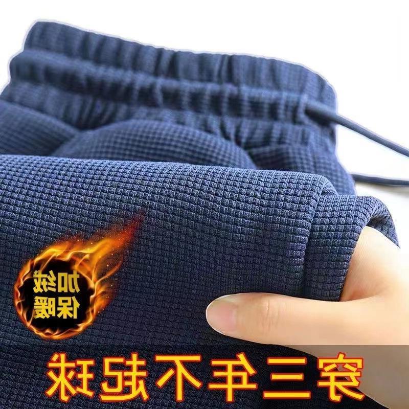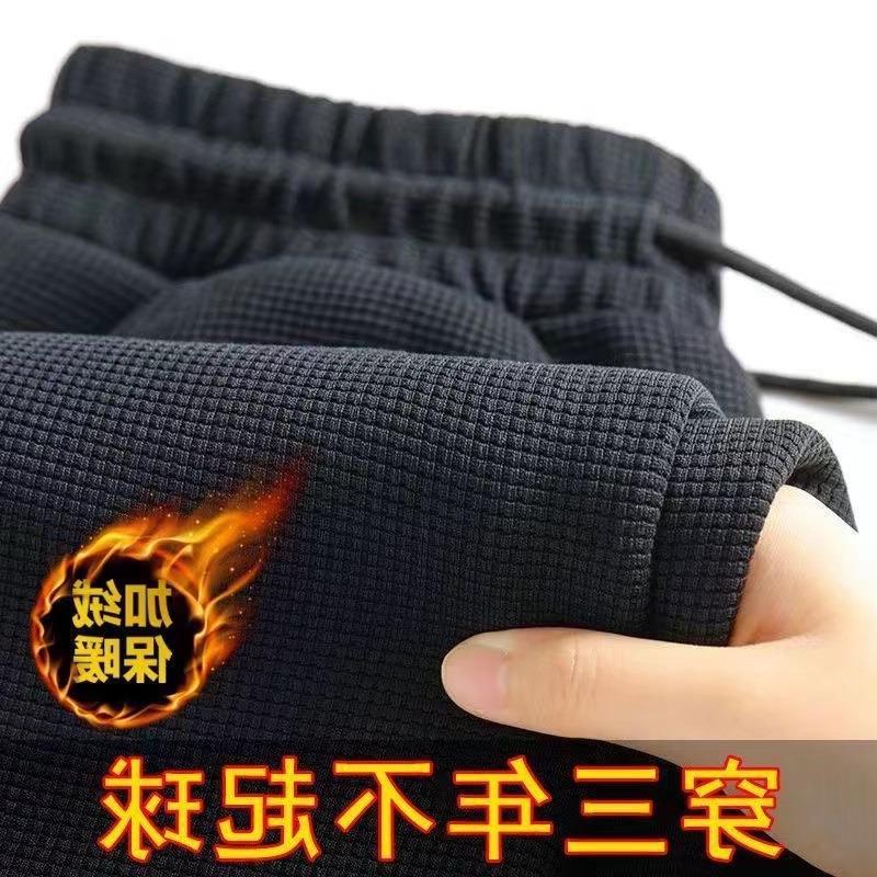 가을과 겨울 남자 기모 두꺼운 캐주얼 바지 중량급 와플릭 루즈 플러스 사이즈 남성용 올 매치 스트레이트 스포츠 스웨트 바지스토어 가기