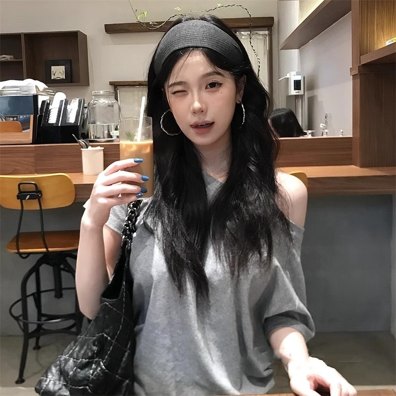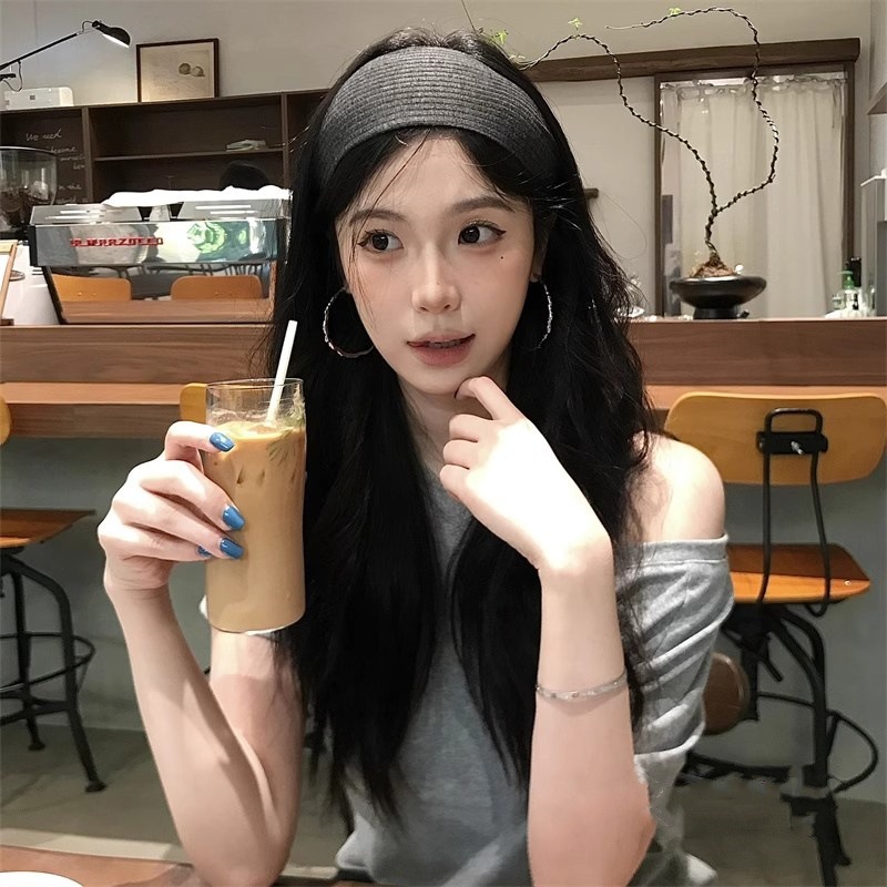 Yi Mengling 같은 스타일 회색 니트 넓은 챙이 달린 머리띠 가을과 겨울 높은 패션 기질 머리띠 높은 두개골 탑 워시 페이스 헤드웨어